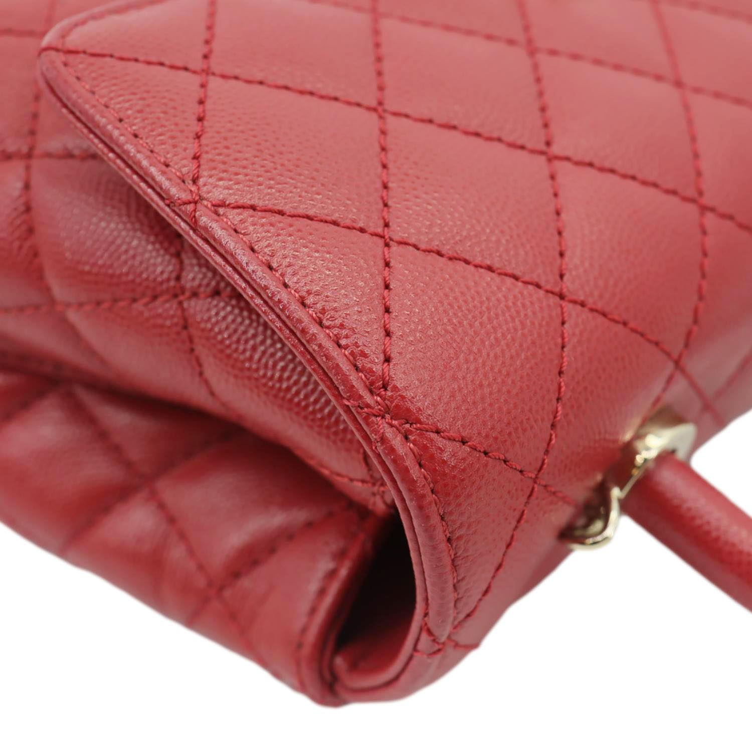 Coco Handle Flap Mini Quilted Caviar Leather Shoulder Bag Red