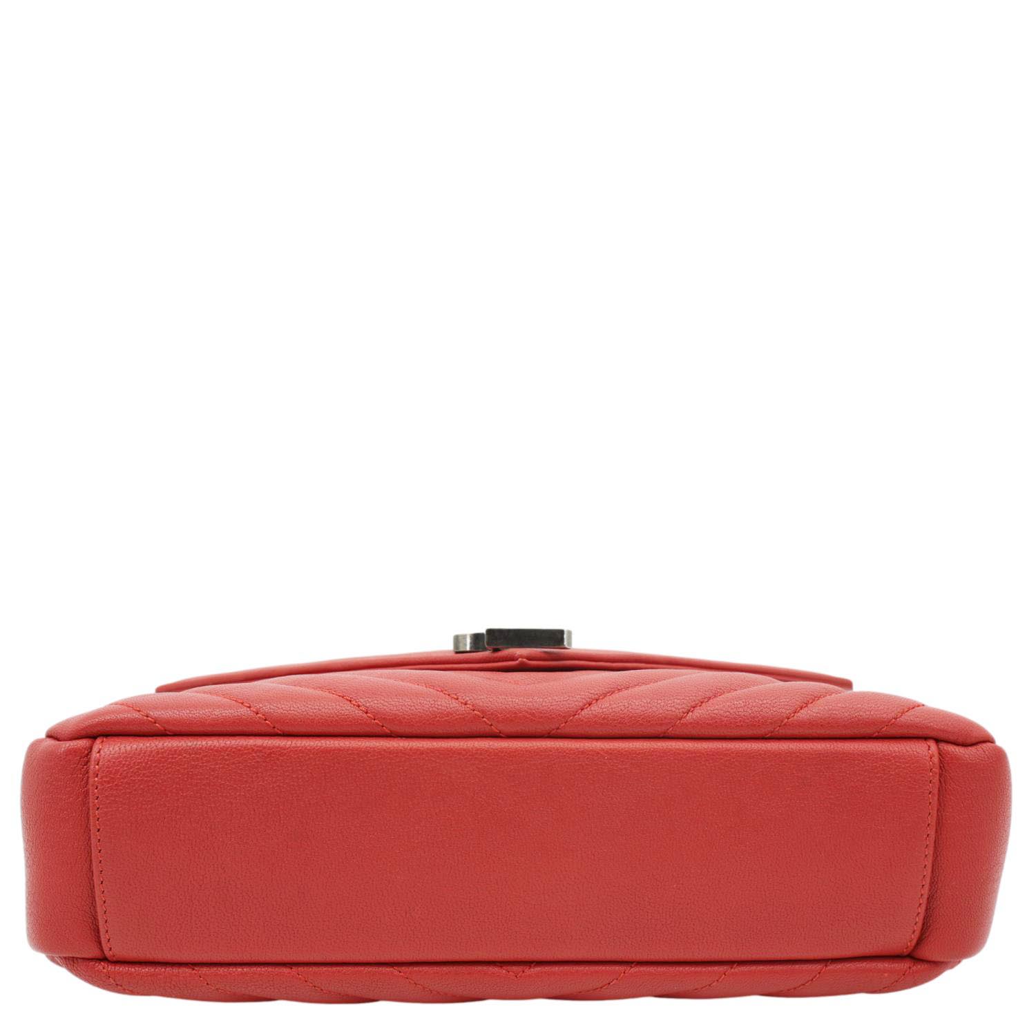 YVES SAINT LAURENT College flap medium shoulder bag in red classic chevron leather with signature YSL monogram. Elegant and structured, perfect for day-to-night looks with timeless luxury appeal. Refined and versatile, ideal for carrying essentials with bold, sophisticated style.