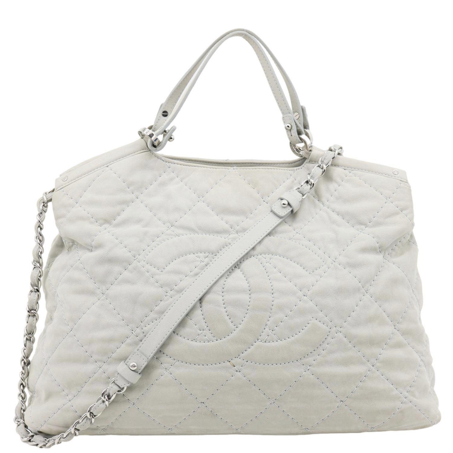CC Sea Hit Quilted Calfskin Leather Tote Bag Grey
