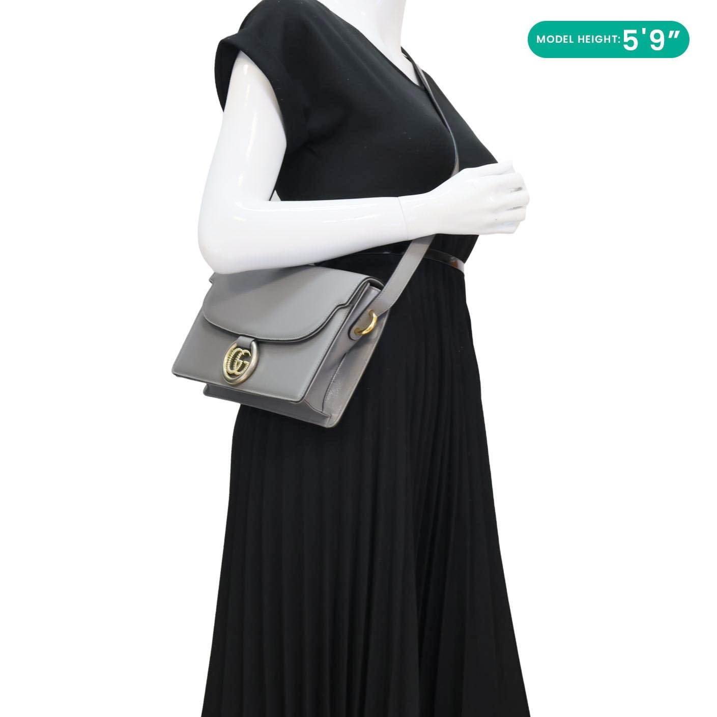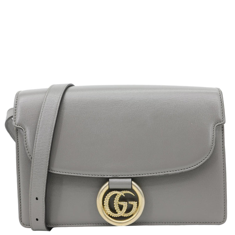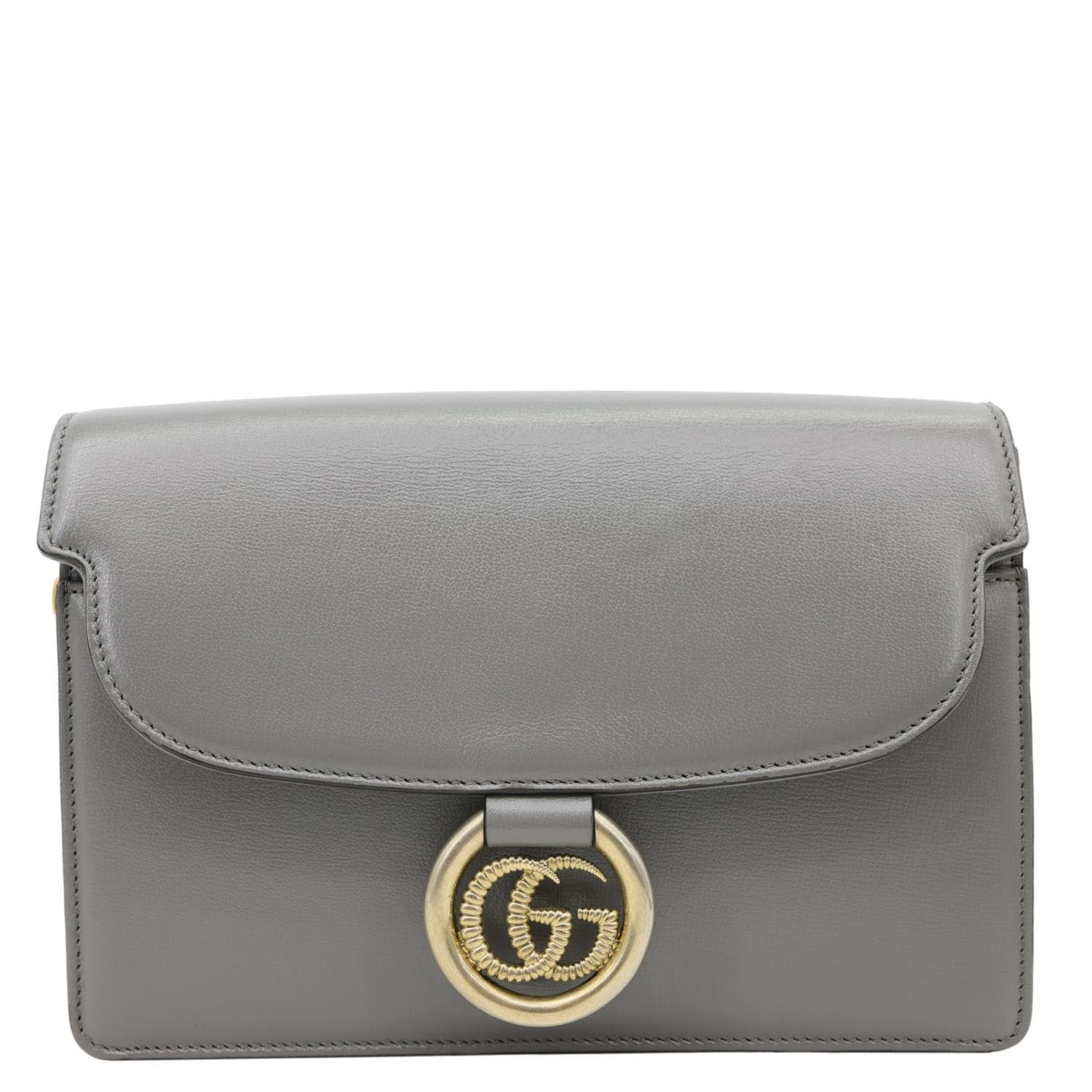 GUCCI GG Ring Leather Shoulder Bag Light Grey 589474