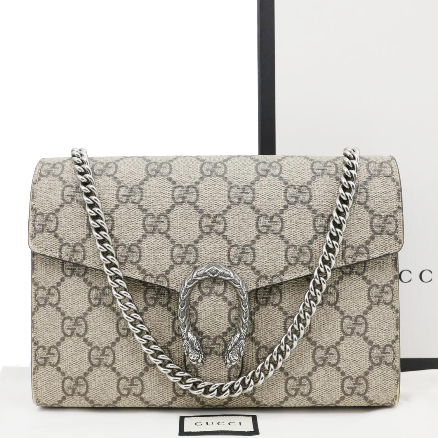 GUCCI Dionysus GG Supreme Canvas Chain Wallet Crossbody Bag Beige 401231