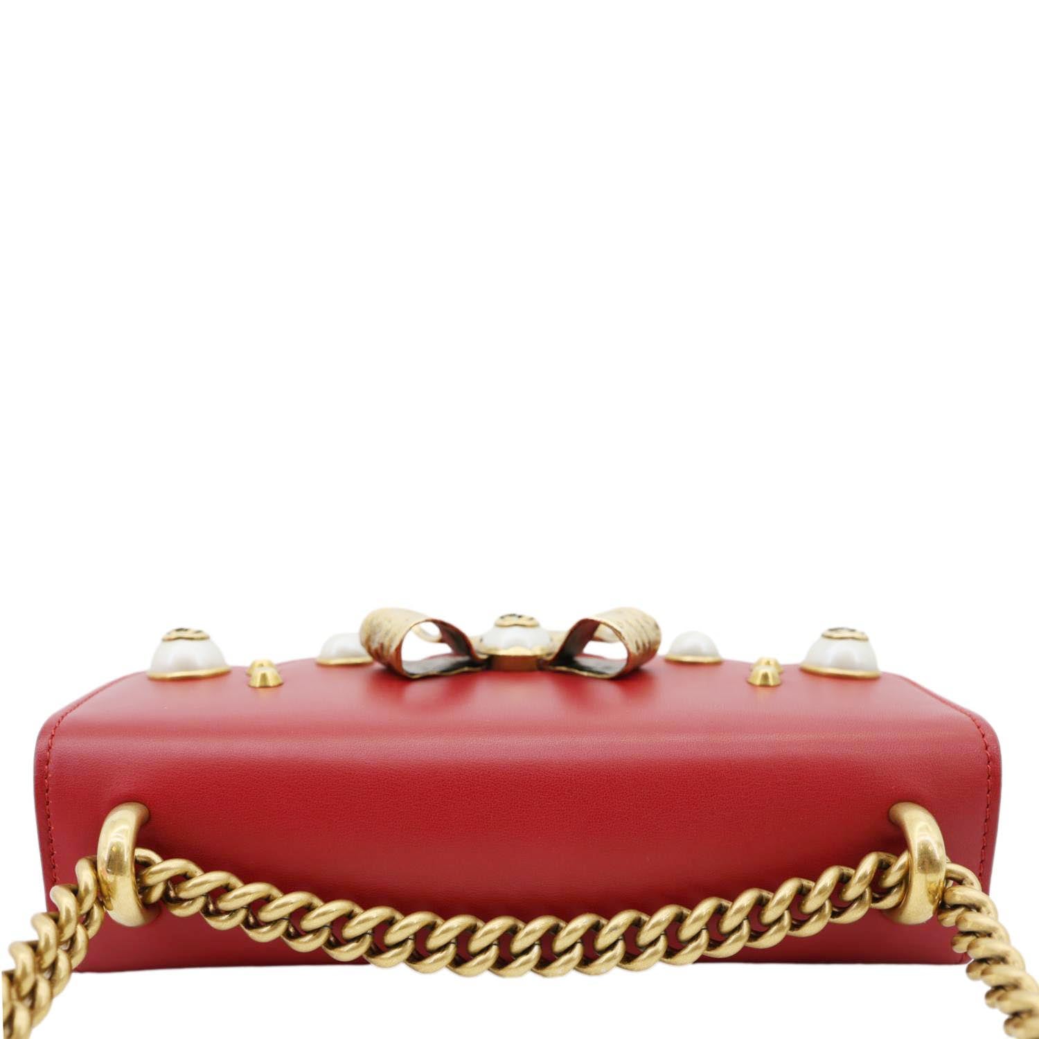 GUCCI Pearly Peony Leather Chain Shoulder Bag Red 432281