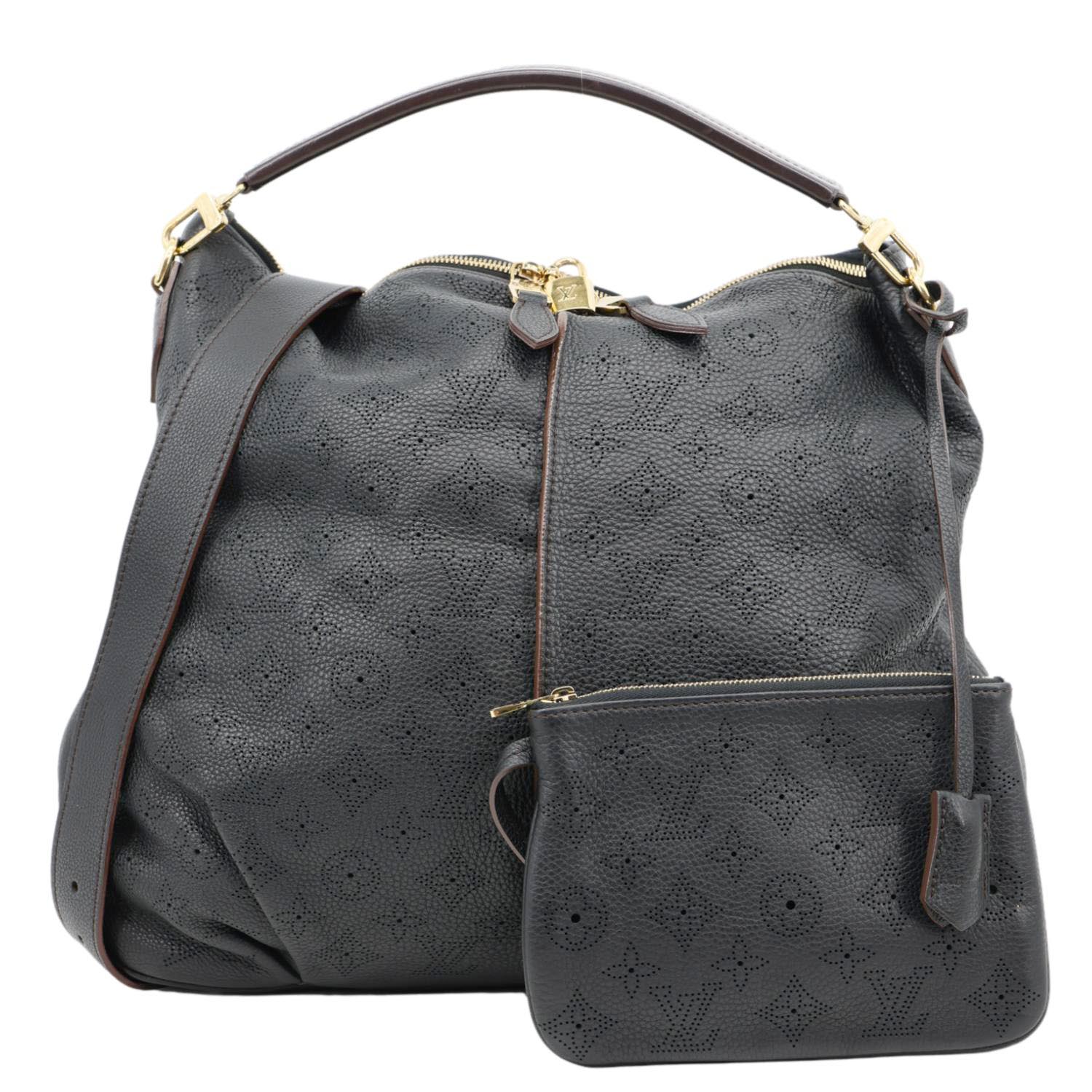 LOUIS VUITTON Selene MM in Black features soft perforated Mahina leather with a slouchy, refined silhouette. Lightweight and spacious, it delivers effortless elegance for everyday use.