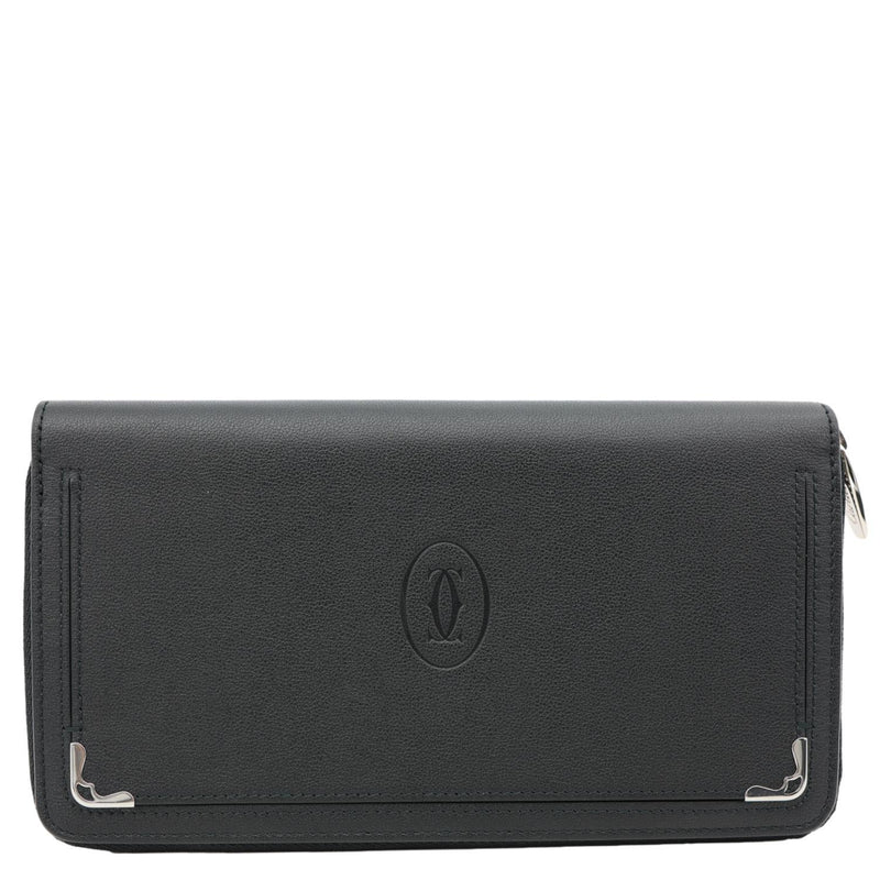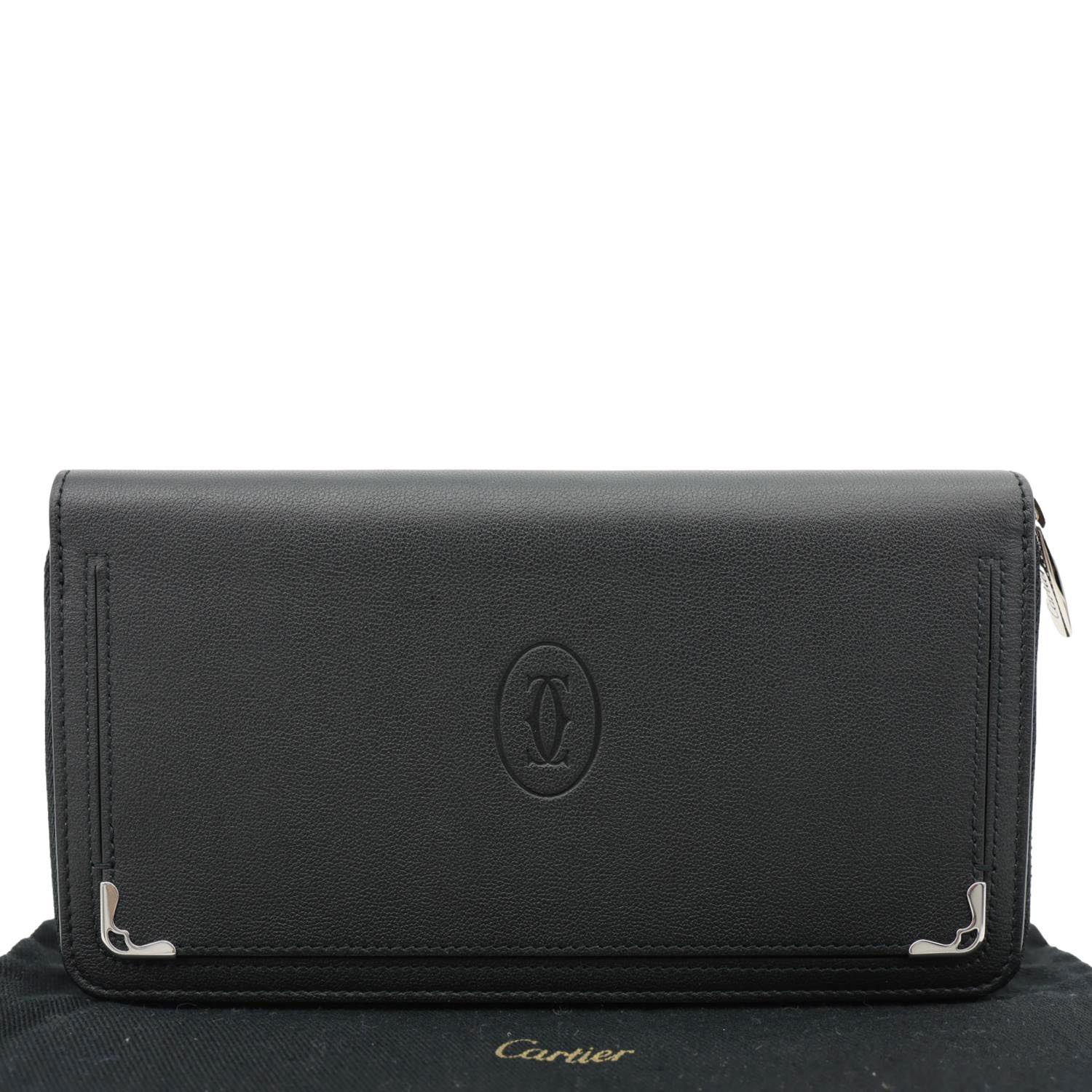 CARTIER Must Line long wallet crafted from smooth leather in a classic black finish. Features a refined, timeless design with a well-organized interior for everyday elegance.