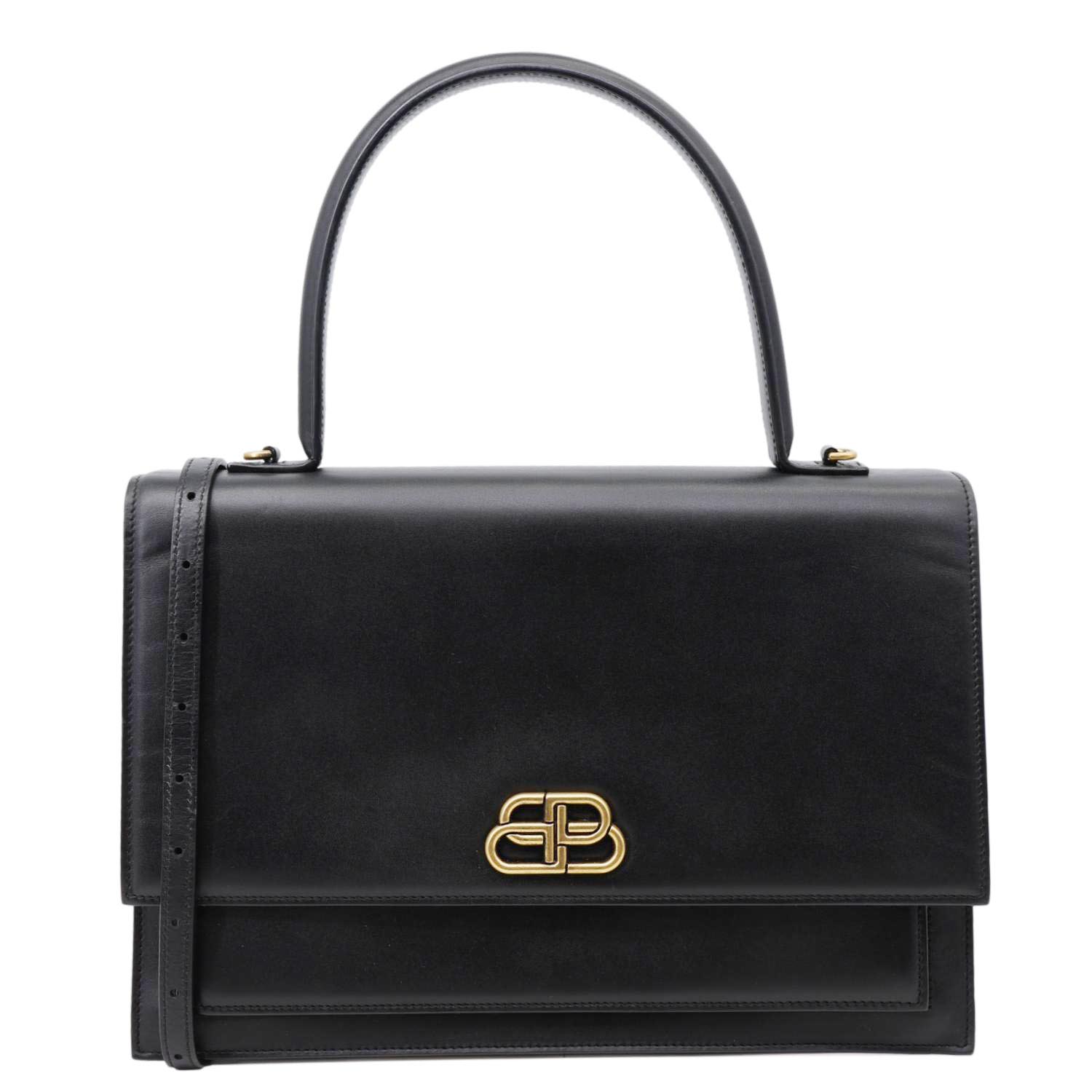 BALENCIAGA Sharp XS Calfskin Leather Top-Handle Crossbody Bag Black