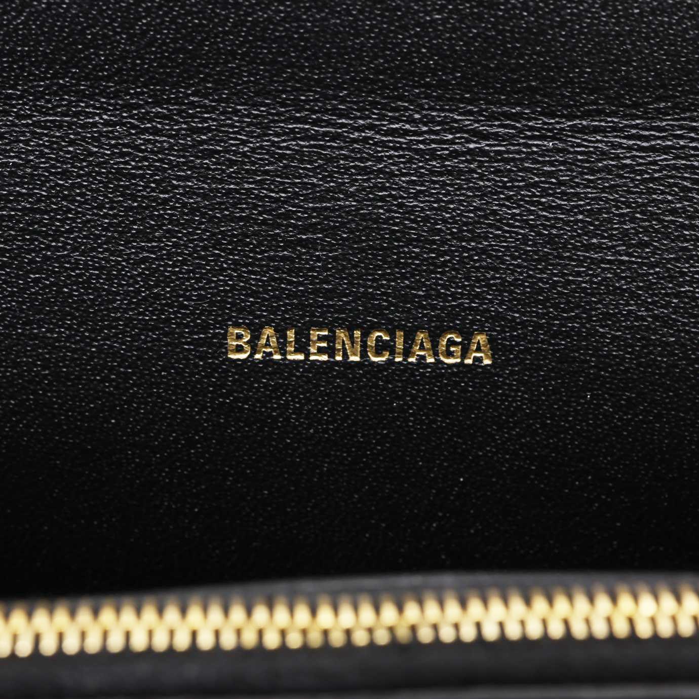 This sleek Balenciaga Sharp XS bag features supple calfskin leather and a compact top-handle design, perfect for carrying essentials on the go. The black color adds a timeless touch, making it a versatile accessory for any outfit.