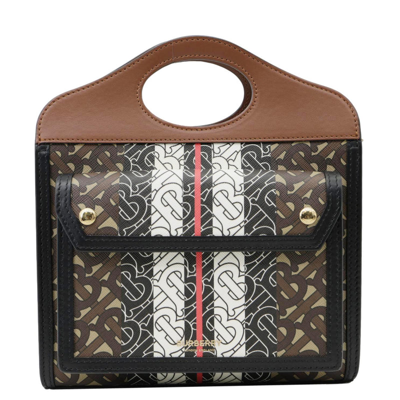 Pocket Mini Monogram Stripe E-Canvas Shoulder Bag Brown