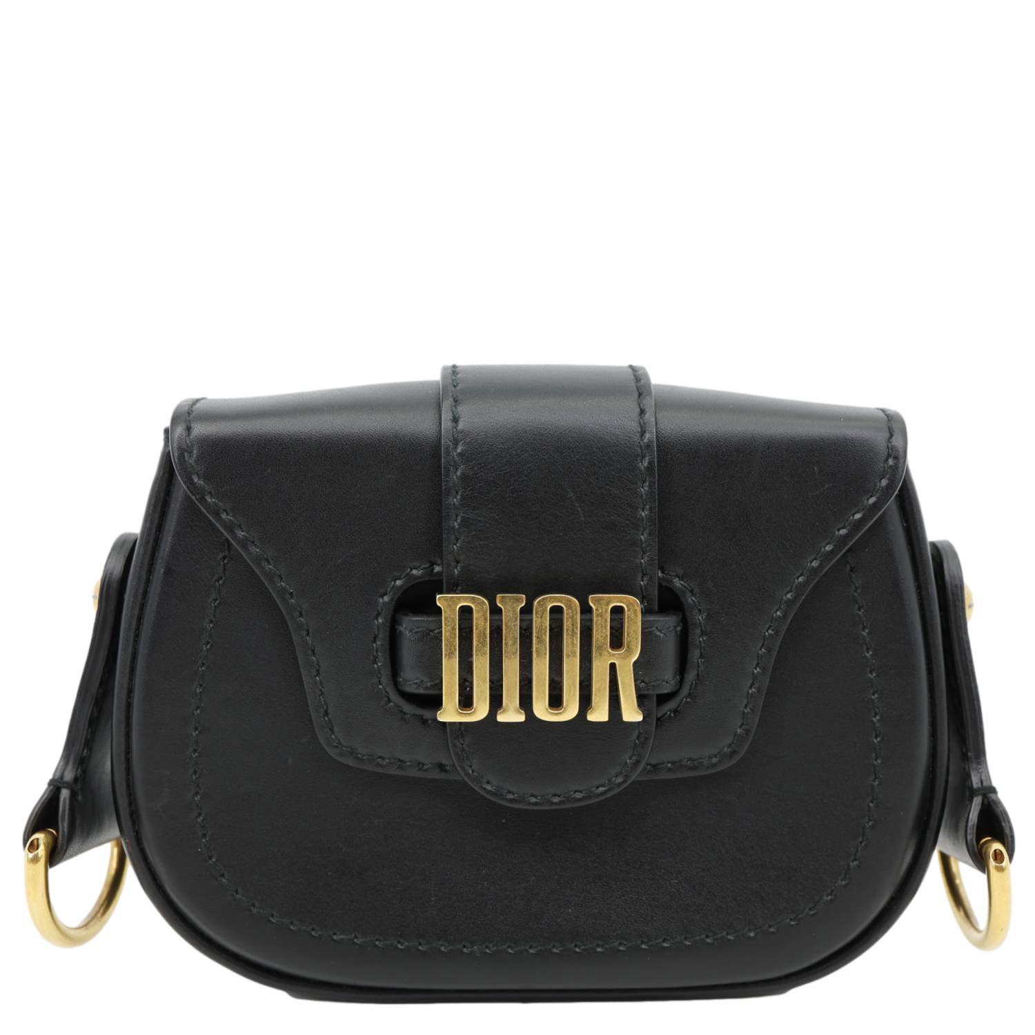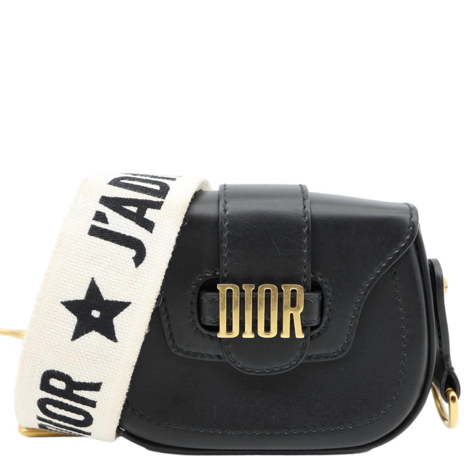 CHRISTIAN DIOR D Fence Small Calfskin Leather Saddle Bag Black