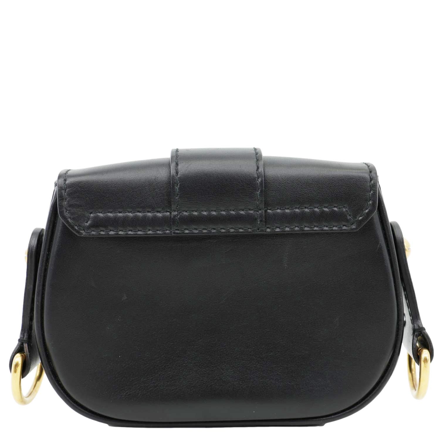 D Fence Small Calfskin Leather Saddle Bag Black