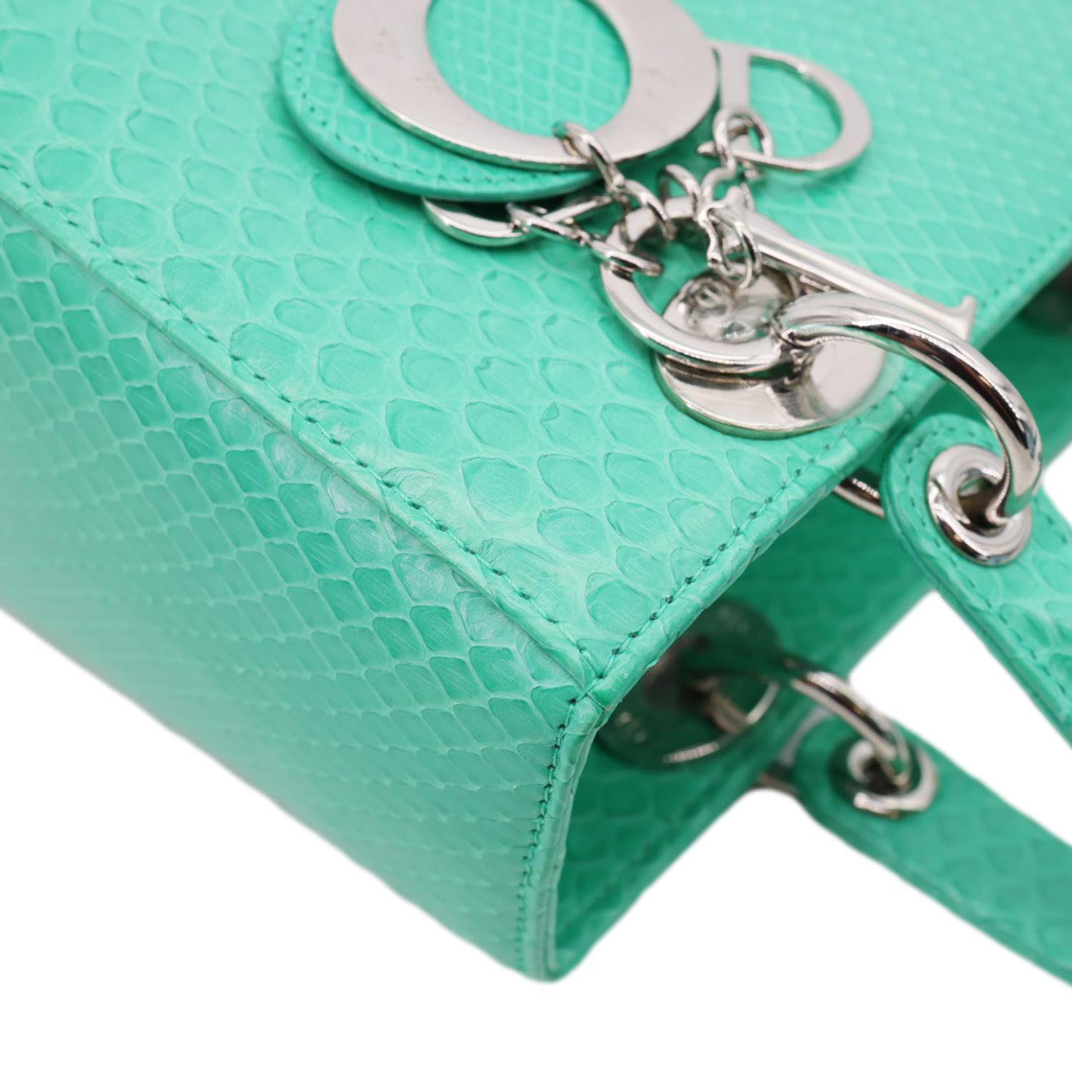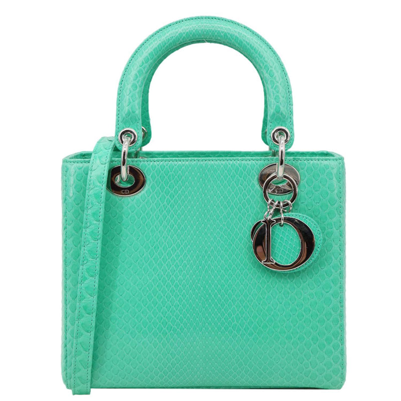 Christian Dior Lady Medium in exotic python leather features a striking green tone with signature quilting. Luxurious and eye-catching, it offers an elegant, structured style with timeless Dior charm.