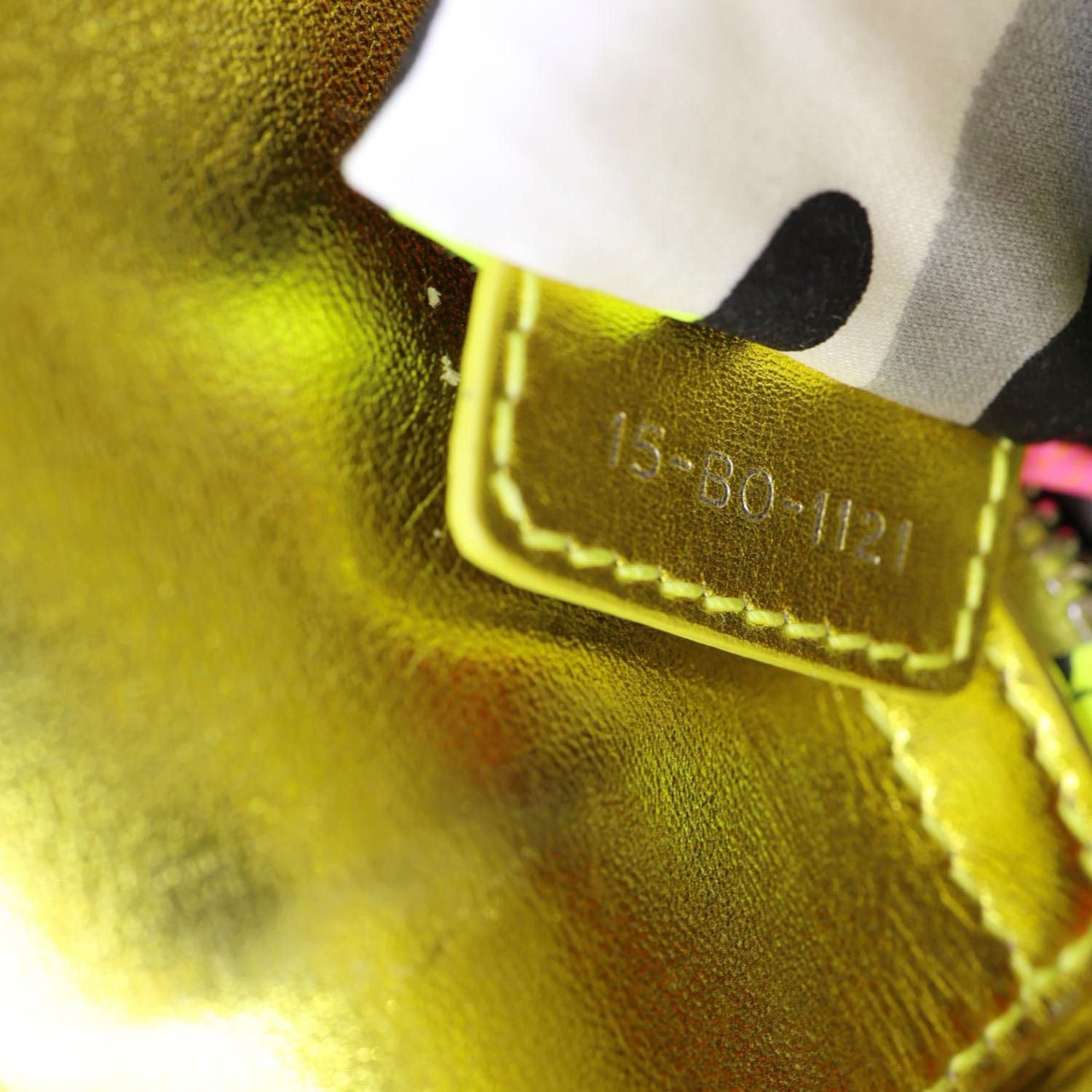 The Christian Dior Lady Dior Mini Bag in metallic neon yellow leather brings a bold, eye-catching twist to the iconic design. With signature Cannage stitching and Dior charms, it offers a chic statement in a compact size.