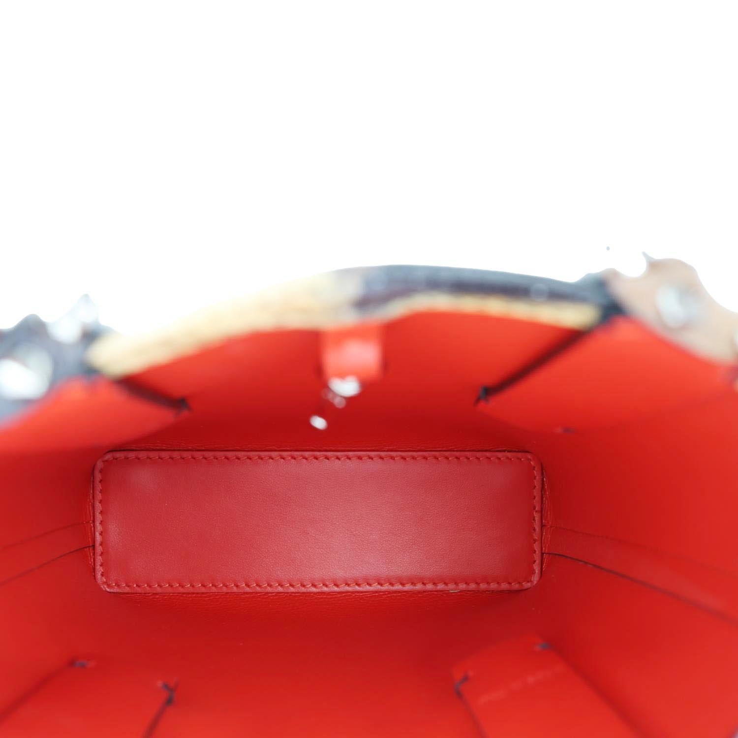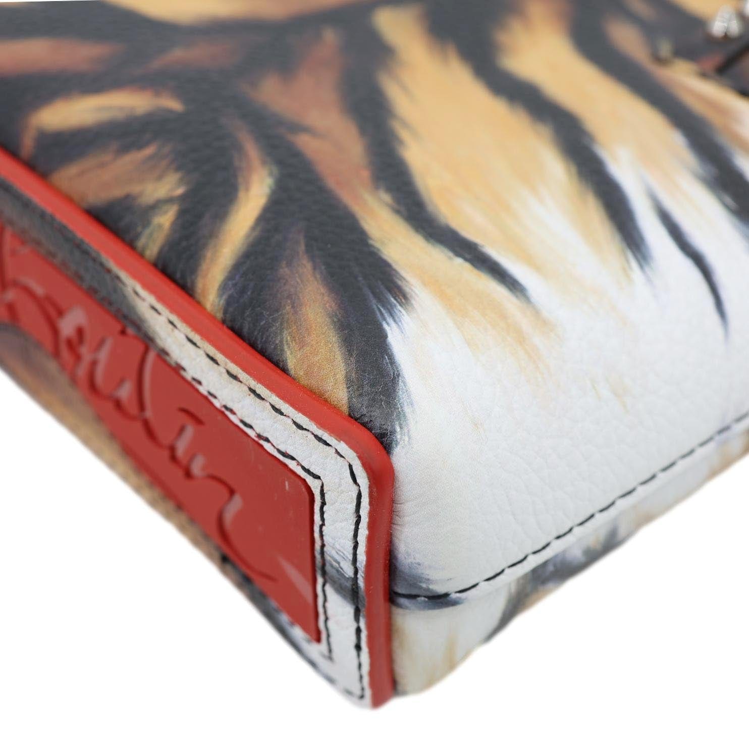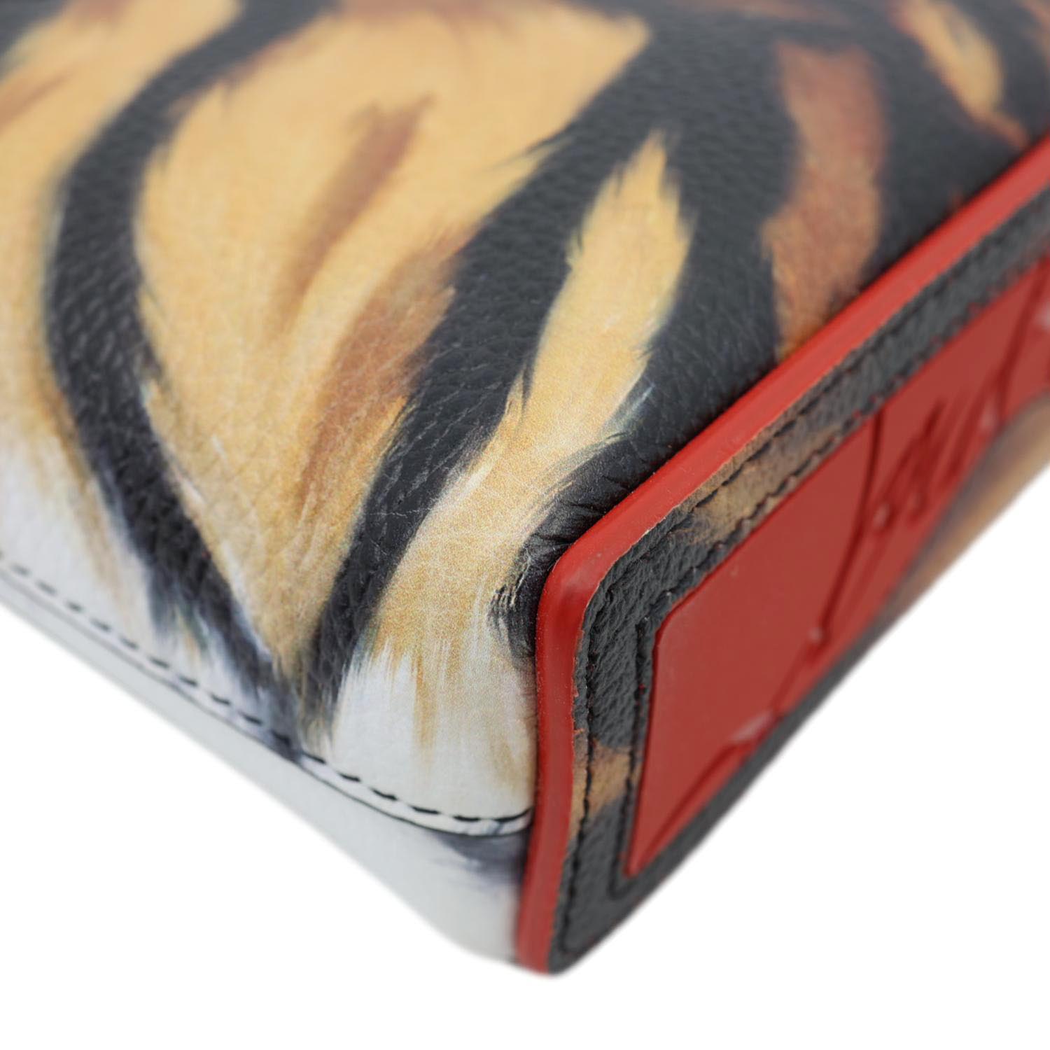 A striking tote crafted in smooth calfskin with bold Bengal print in vibrant multicolor. Designed in the vertical North-South silhouette with sleek top handles and signature red base. Compact yet chic, it embodies Louboutin’s signature edge and modern luxury.