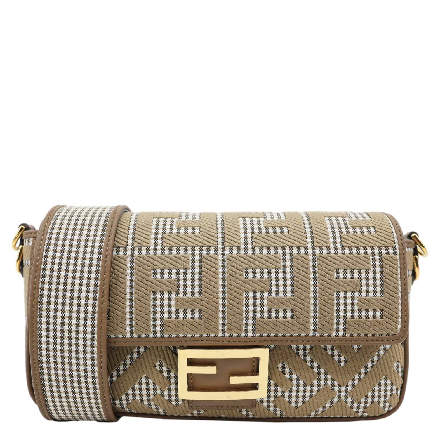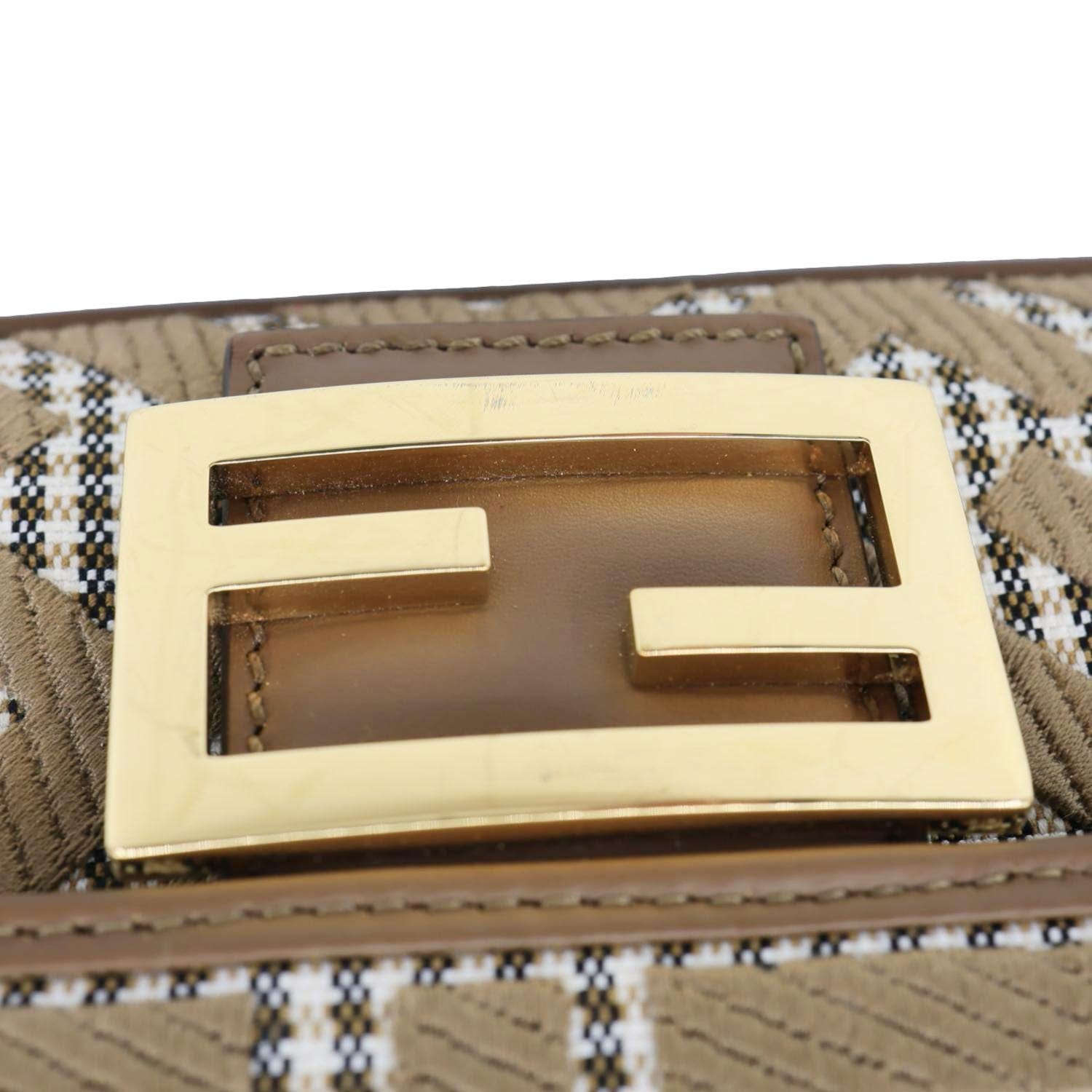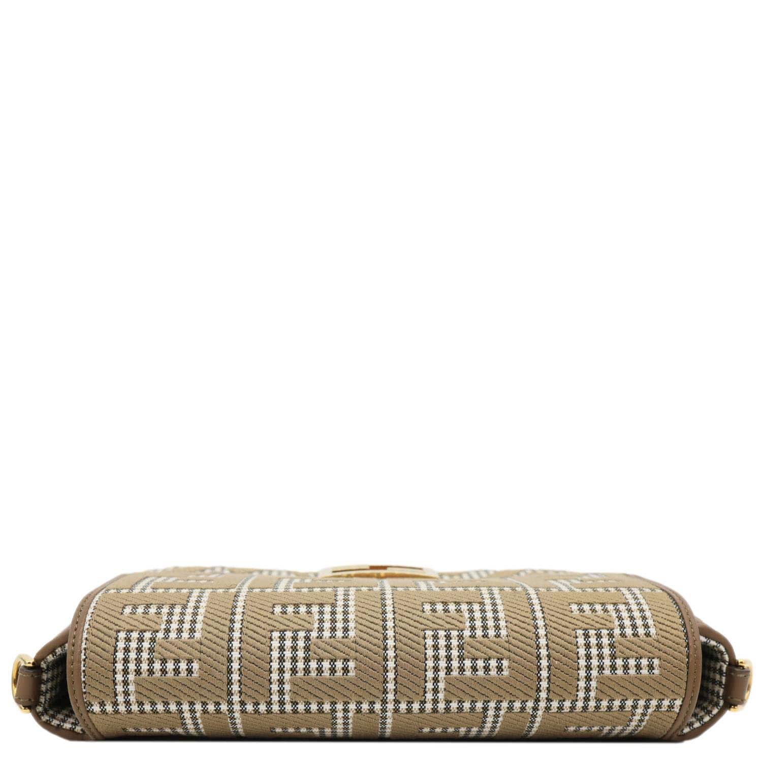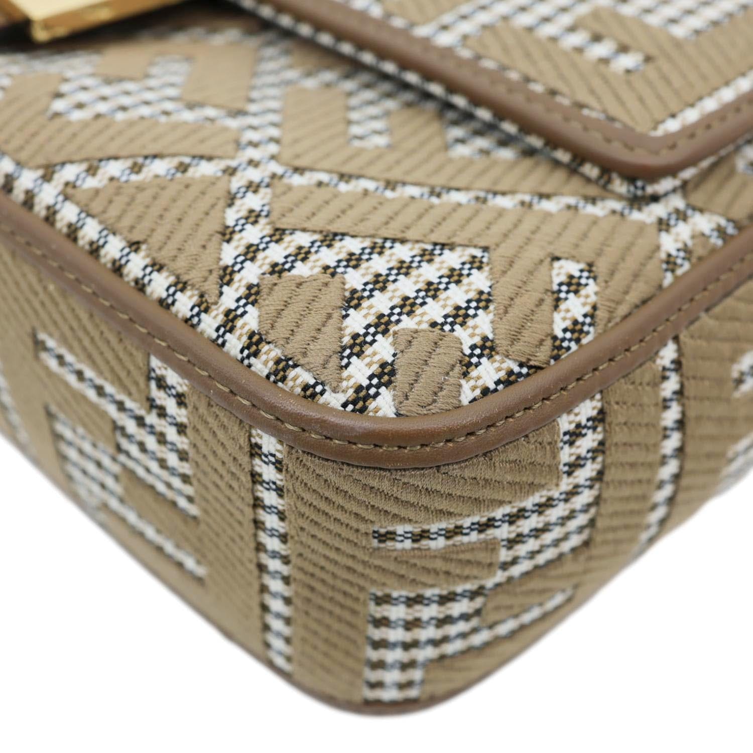 Baguette FF Embroidered Canvas Shoulder Bag Beige