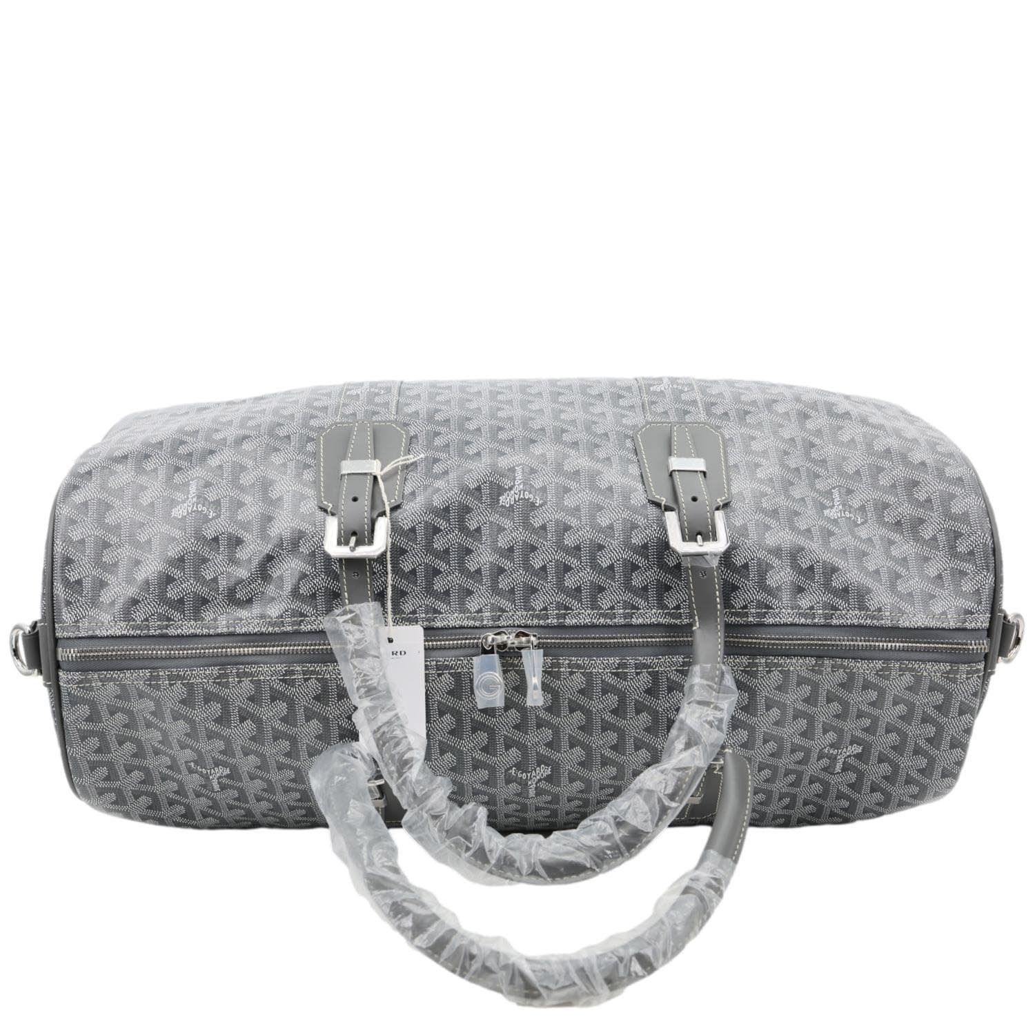 GOYARD 50 Boston Bag in Chevron Print Canvas offers a spacious, durable, travel-friendly design. The grey tone and classic Goyard pattern add a refined, luxurious touch for effortless style.