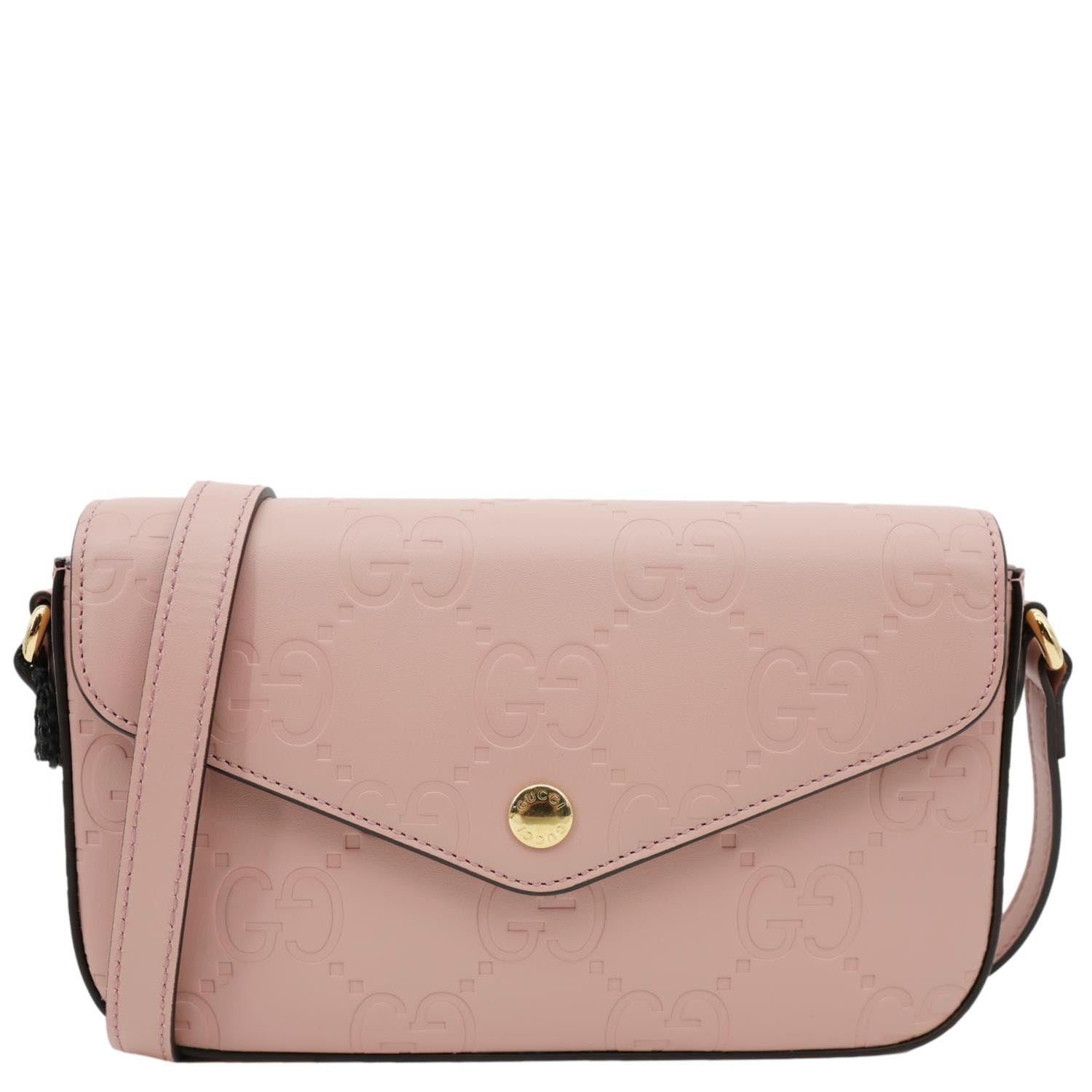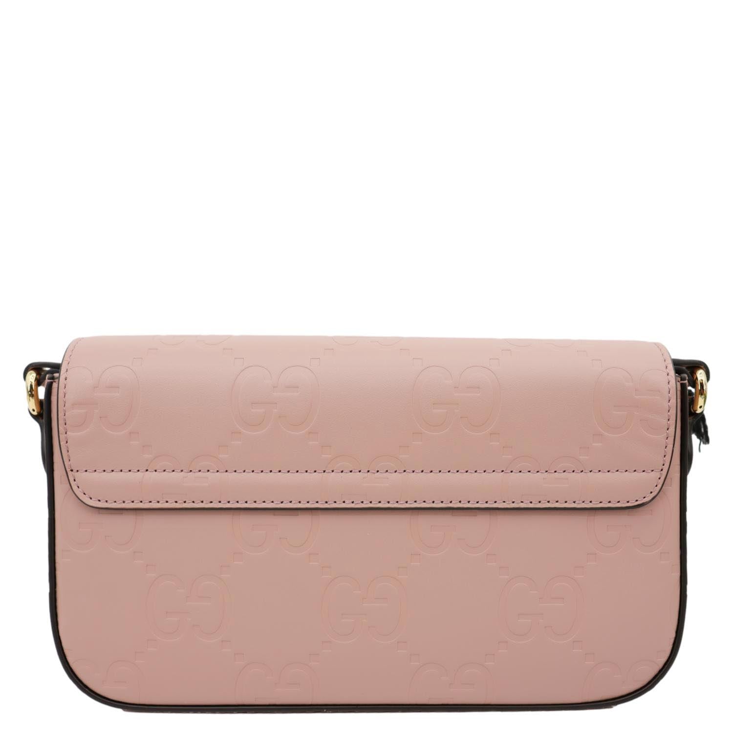 Super Mini GG Embossed Leather Shoulder Bag Pink 772794