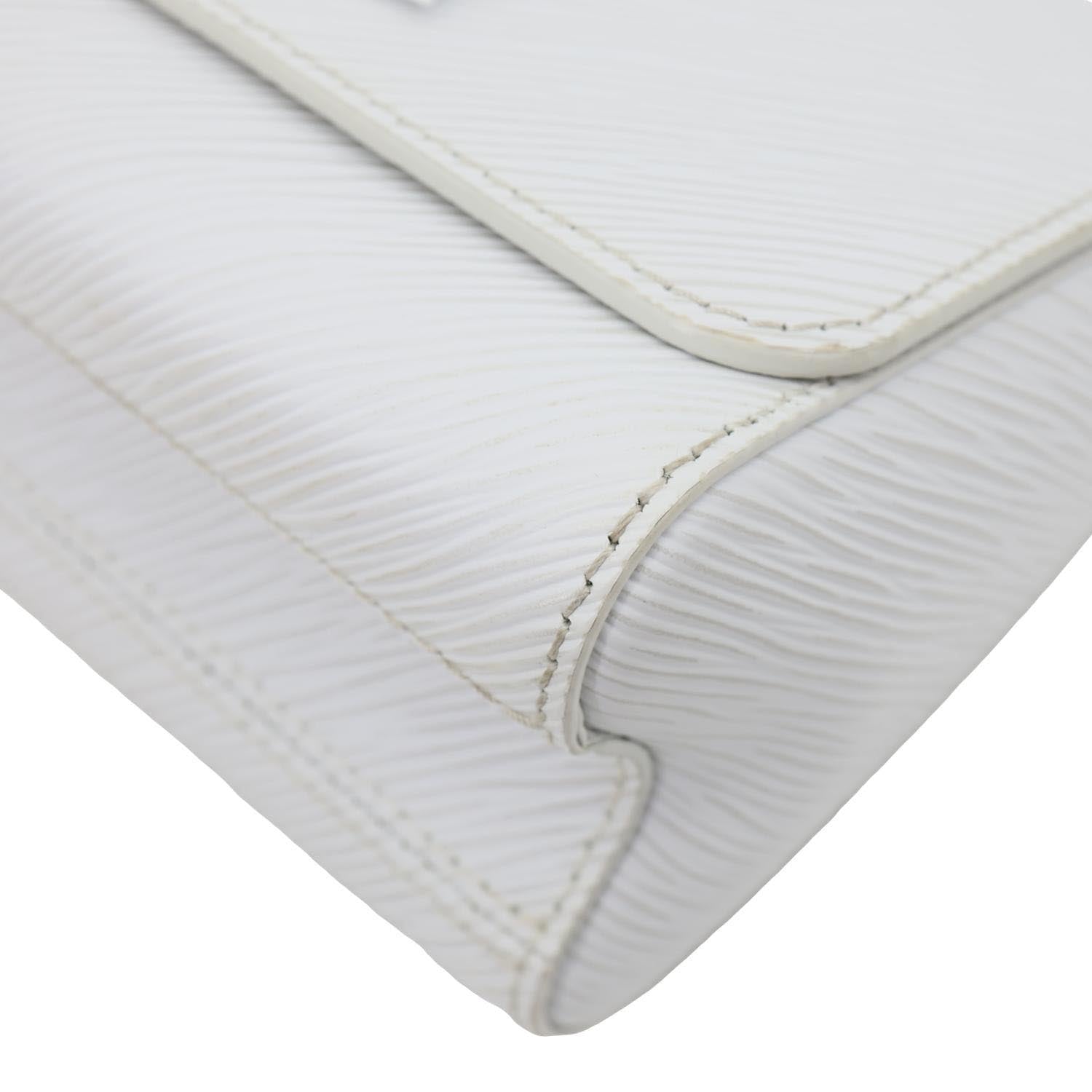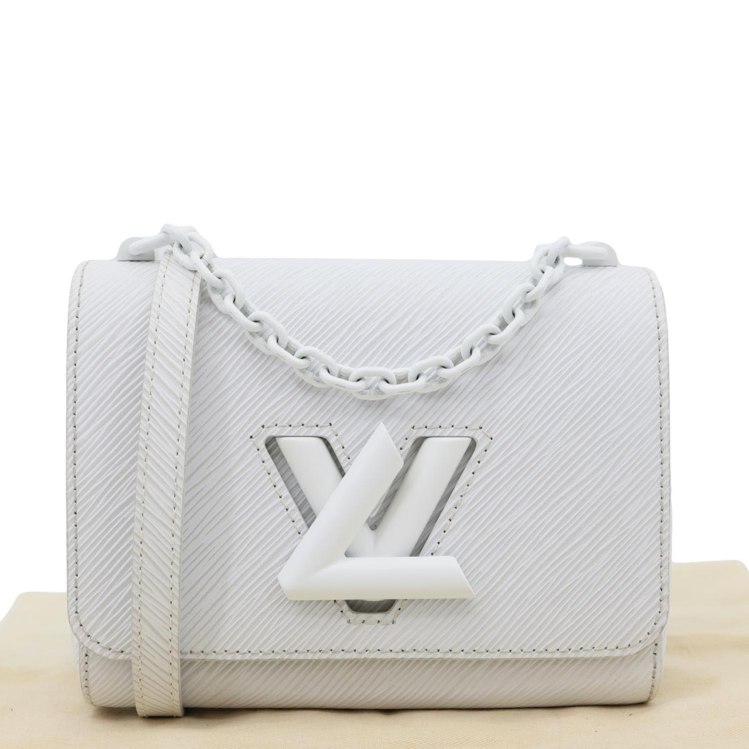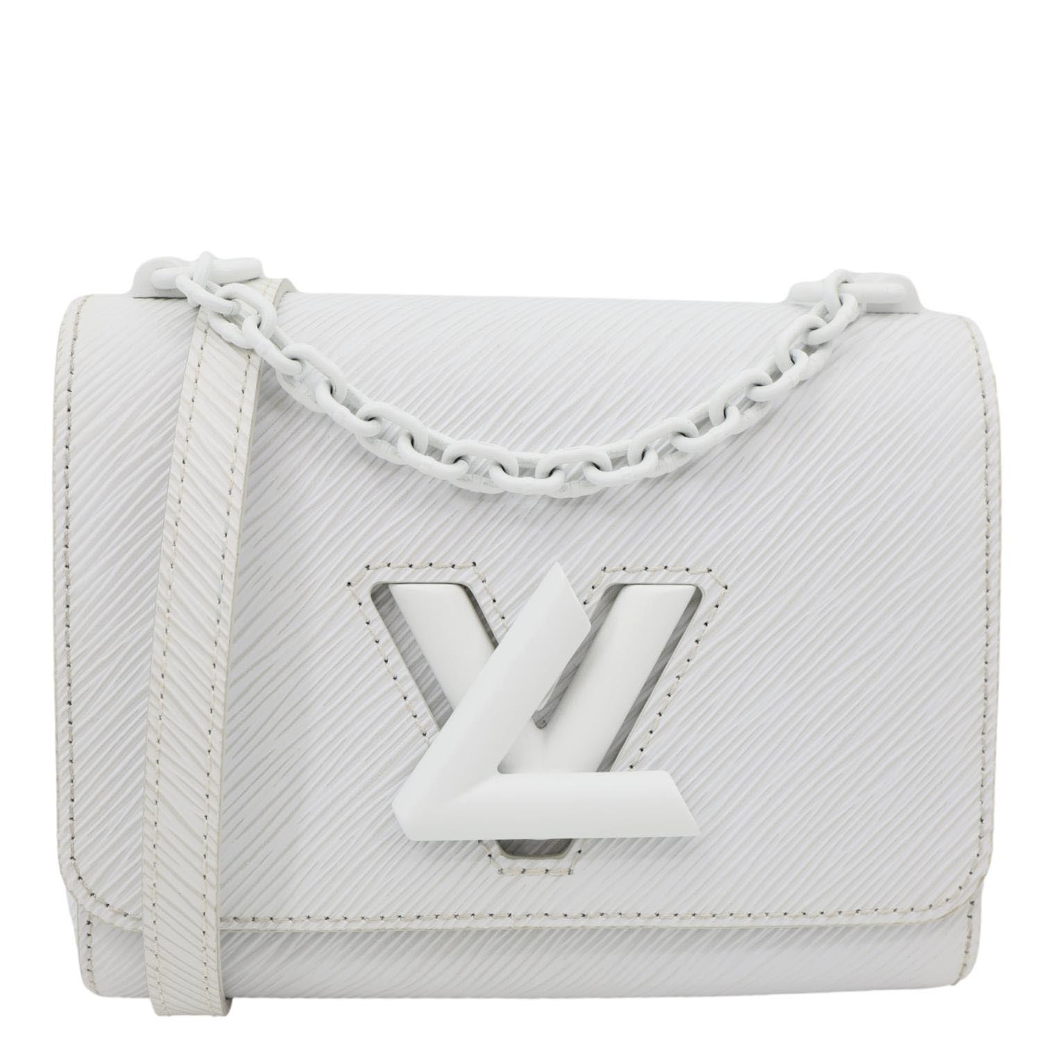 LOUIS VUITTON Twist PM in Epi Leather features a clean white finish with the signature LV Twist lock. Compact and elegant, it offers a chic chain strap perfect for polished day-to-night looks.