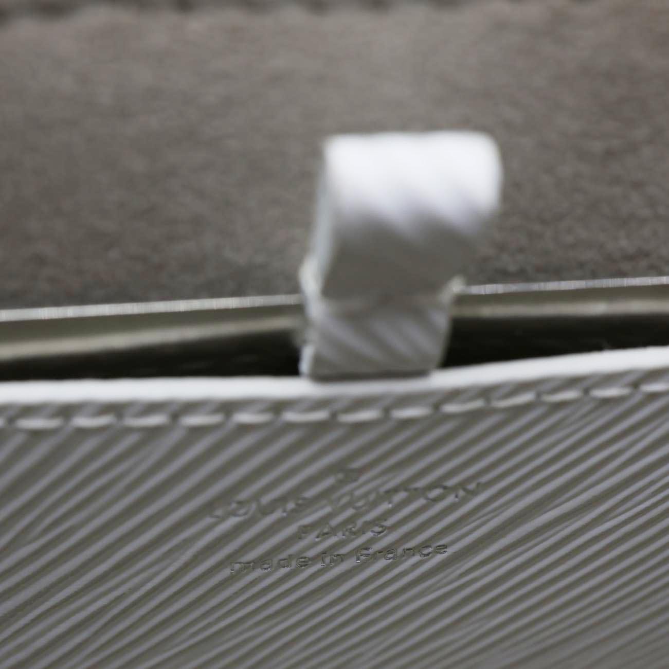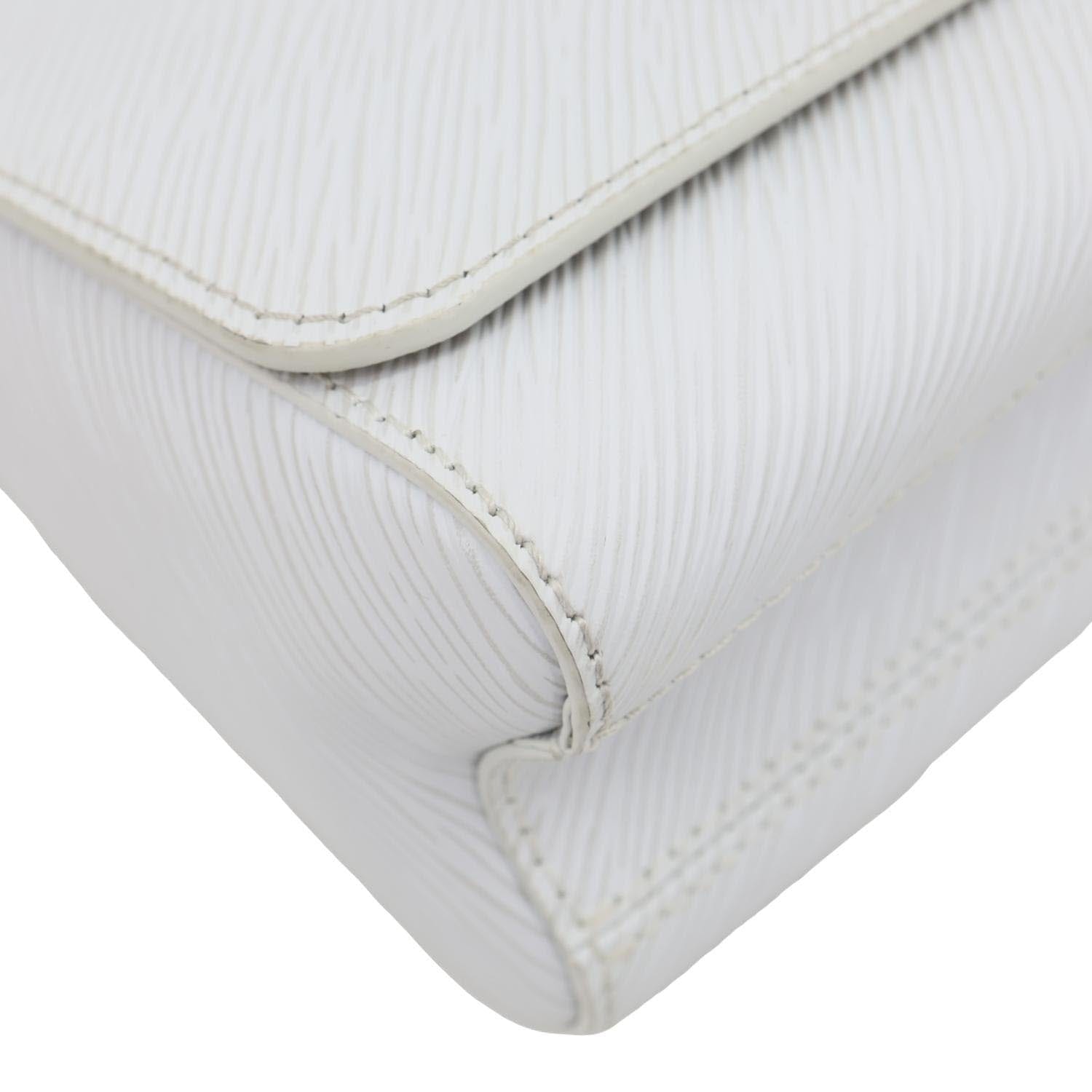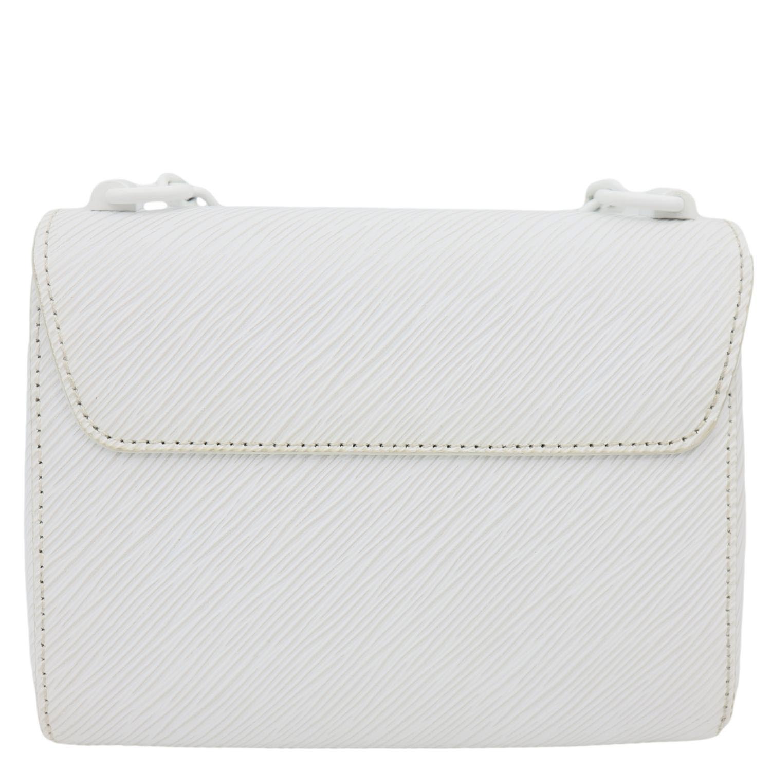 LOUIS VUITTON Twist PM in Epi Leather features a clean white finish with the signature LV Twist lock. Compact and elegant, it offers a chic chain strap perfect for polished day-to-night looks.
