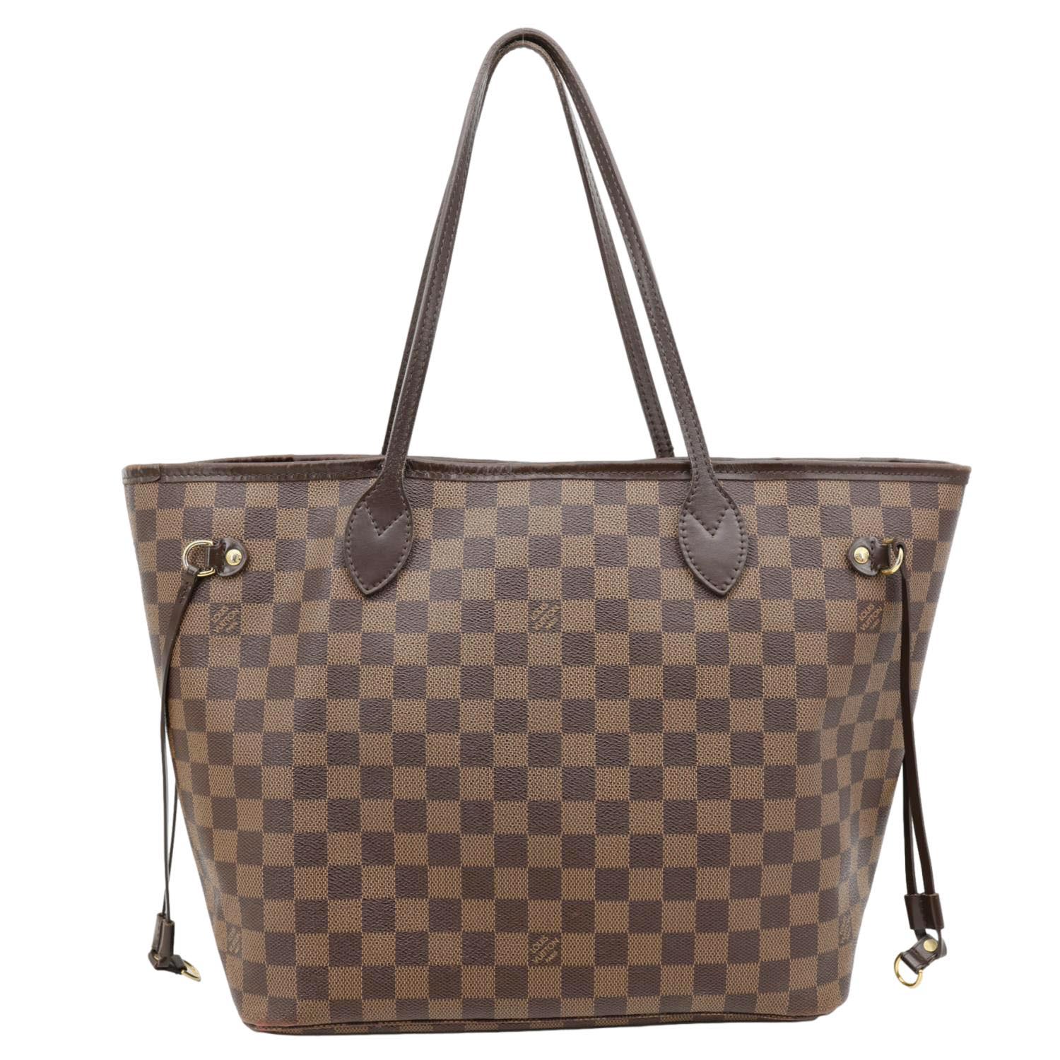 LOUIS VUITTON Neverfull MM Damier Ebene Tote Bag Brown features the iconic checkered canvas with a spacious, lightweight design for everyday practicality. Its slim leather straps and open interior make it perfect for work, errands, or travel in classic LV style.