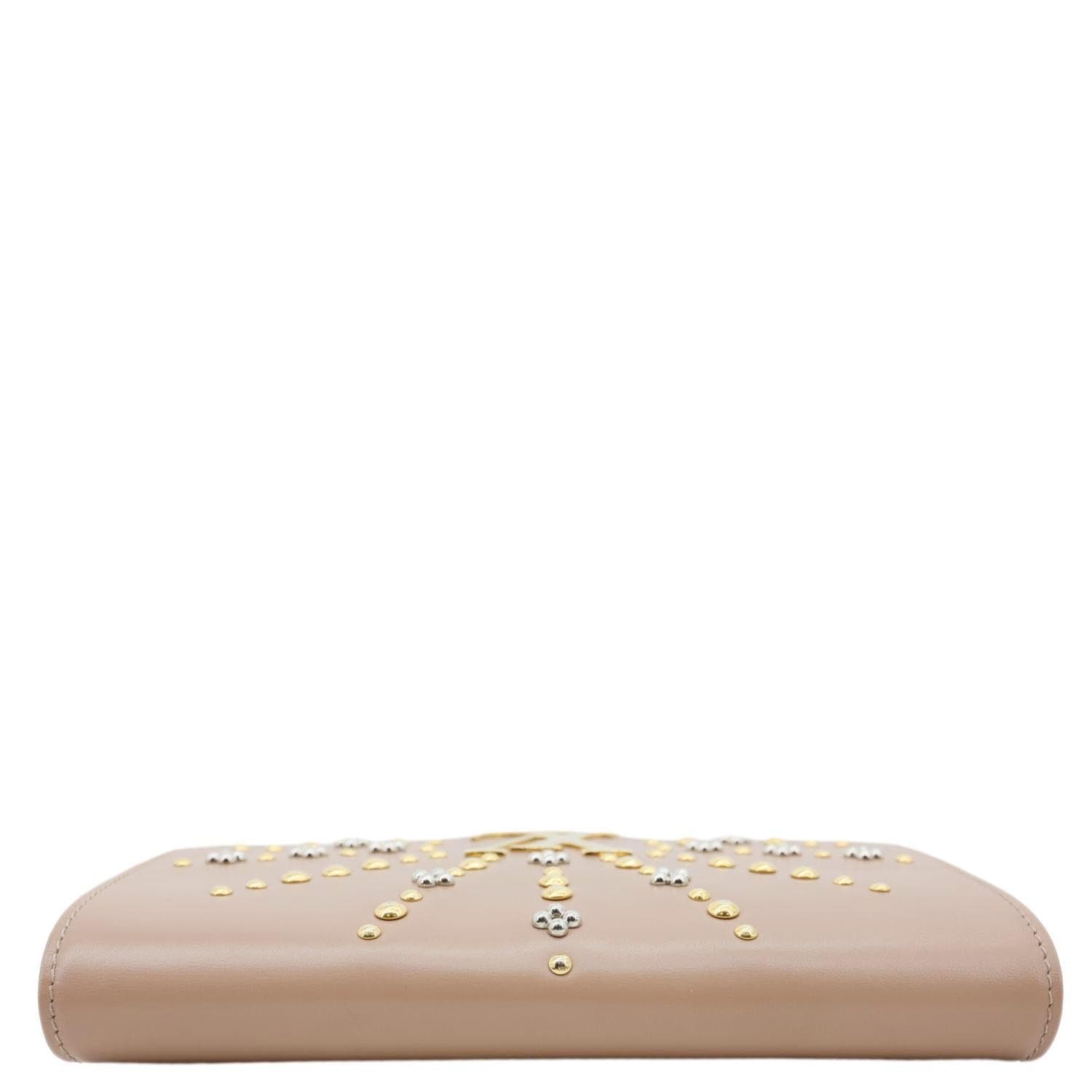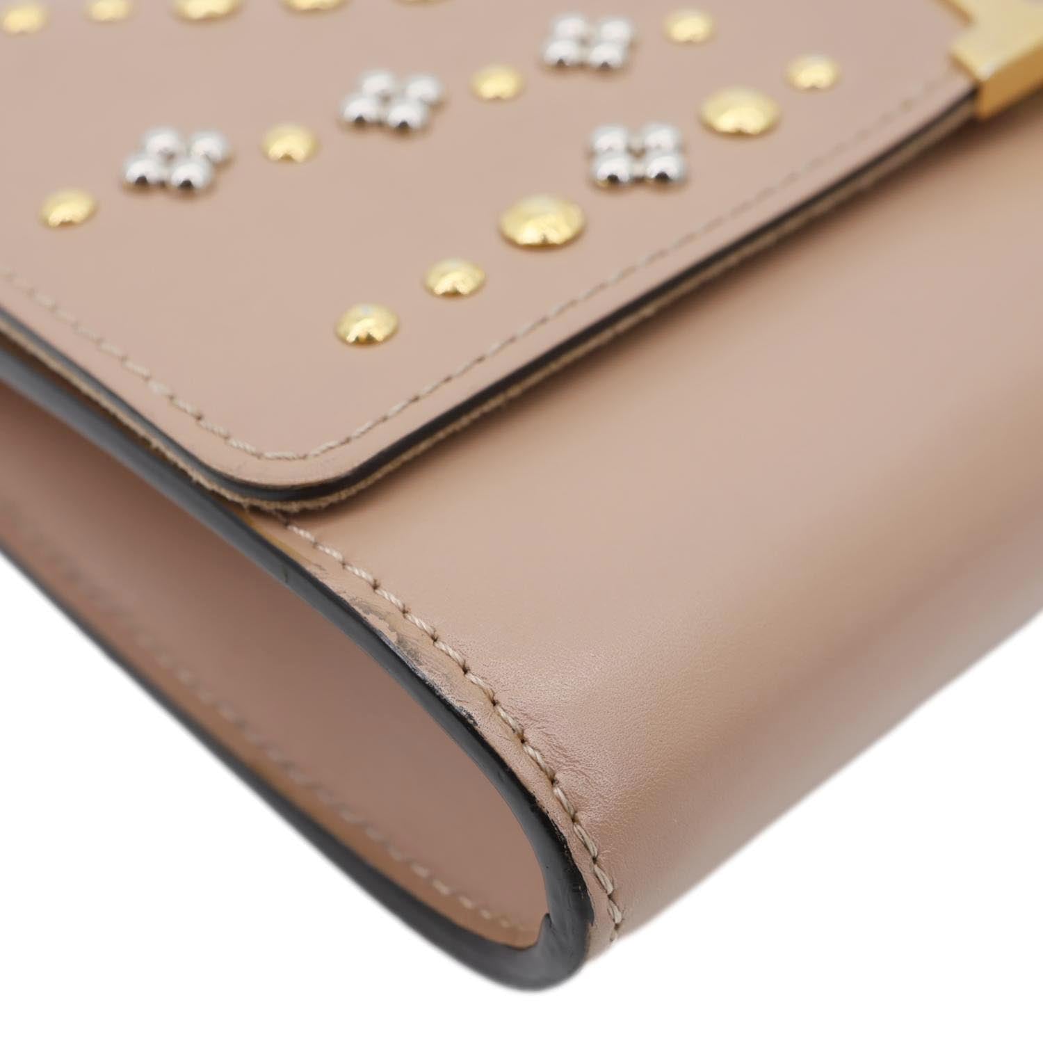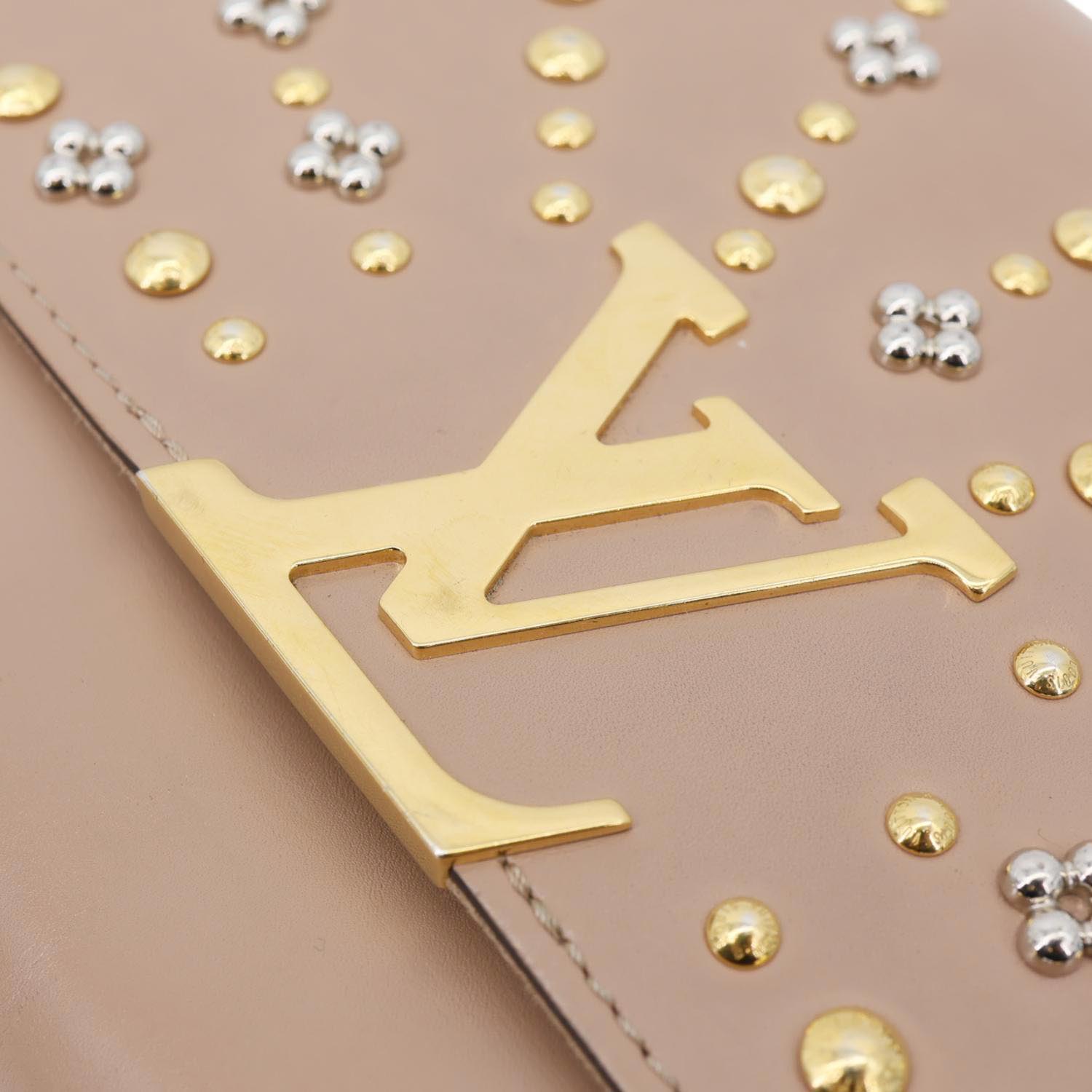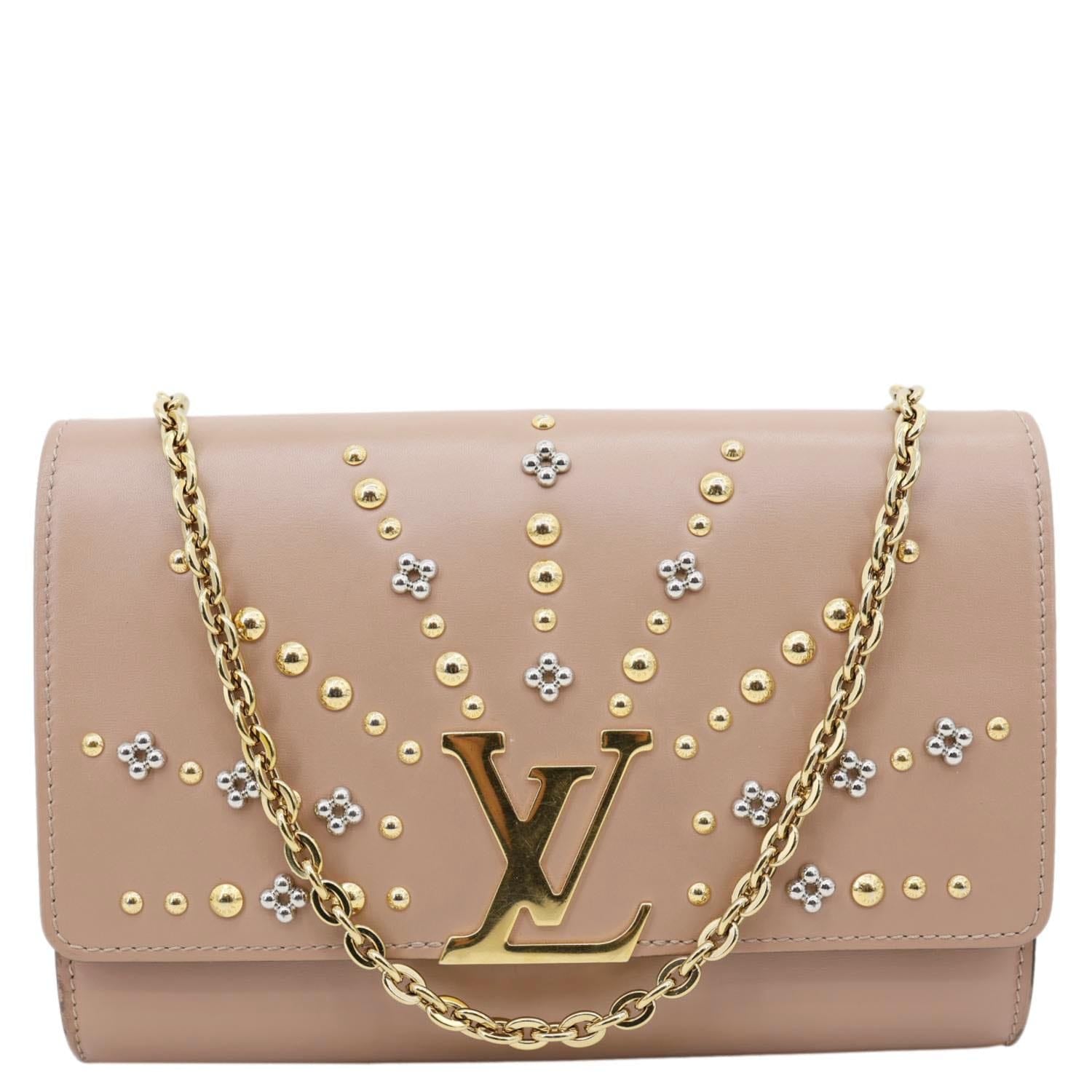 A glamorous Louise GM featuring beige studded leather and the bold LV logo. Its elegant chain strap and structured silhouette make it a standout statement piece for any occasion.
