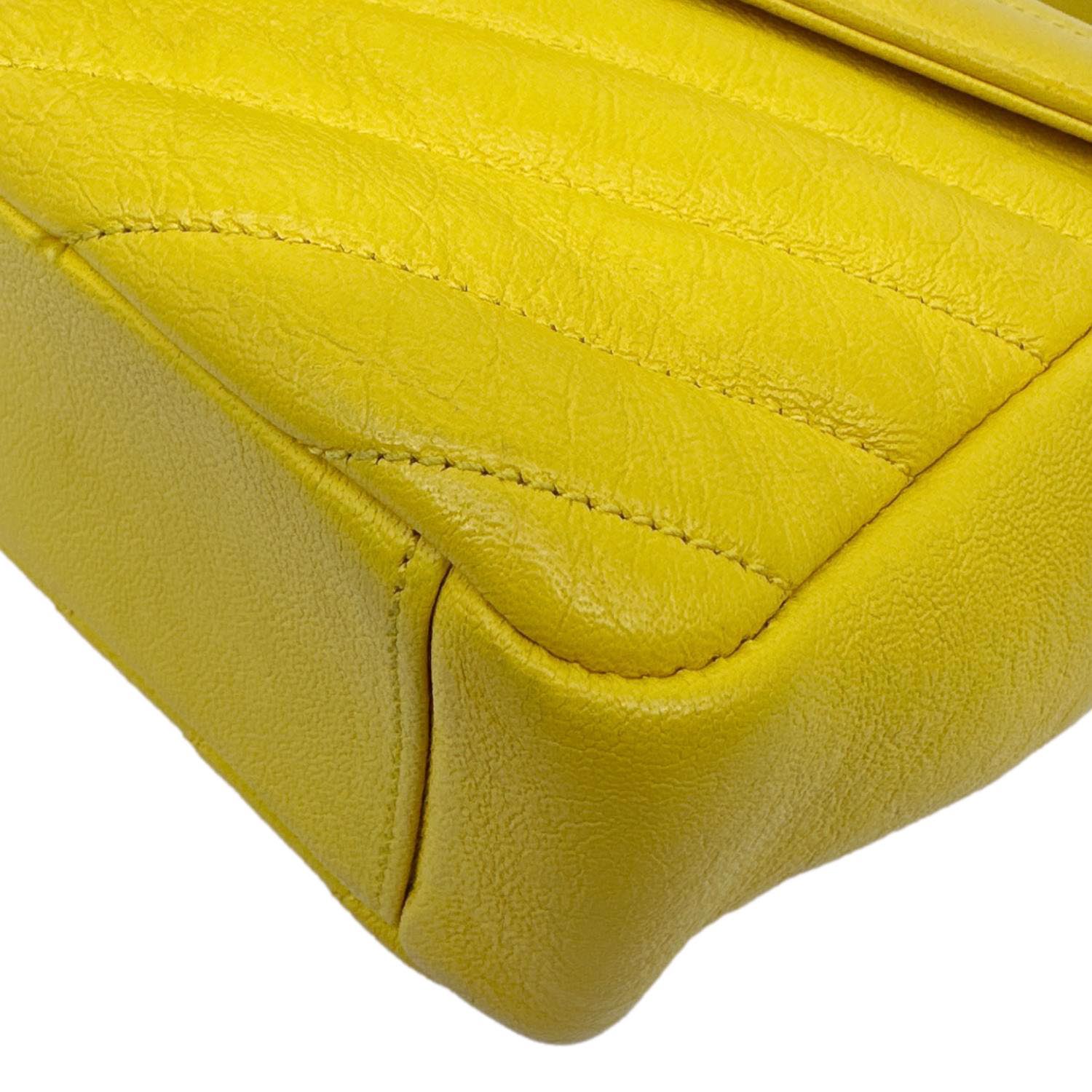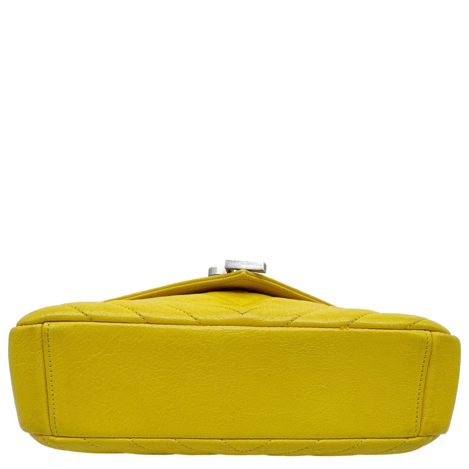 YVES SAINT LAURENT College Flap Medium Chevron Leather Shoulder Bag Yellow