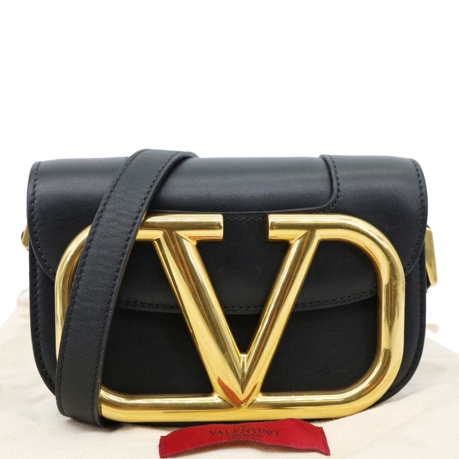 Crafted in smooth black leather, the Valentino Garavani Supervee Crossbody highlights bold sophistication. The oversized gold "V" emblem makes a powerful statement of luxury. Designed with a sleek silhouette and adjustable strap for versatile wear.