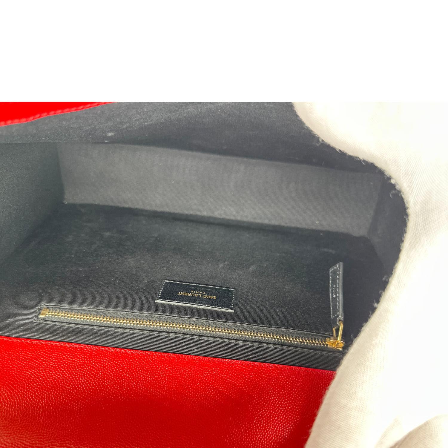 The YVES SAINT LAURENT Envelope Flap Large in red Grain de Poudre leather offers a bold, structured design highlighted by the iconic YSL monogram. Spacious and stylish, it’s perfect for elevating any day or evening look.