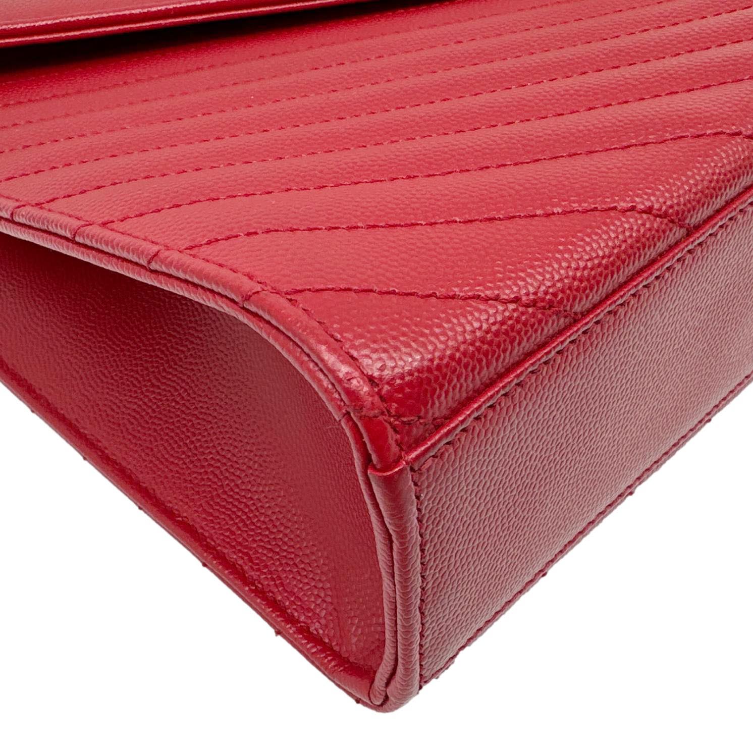 YVES SAINT LAURENT Envelope Flap Large Grain De Poudre Crossbody Bag Red
