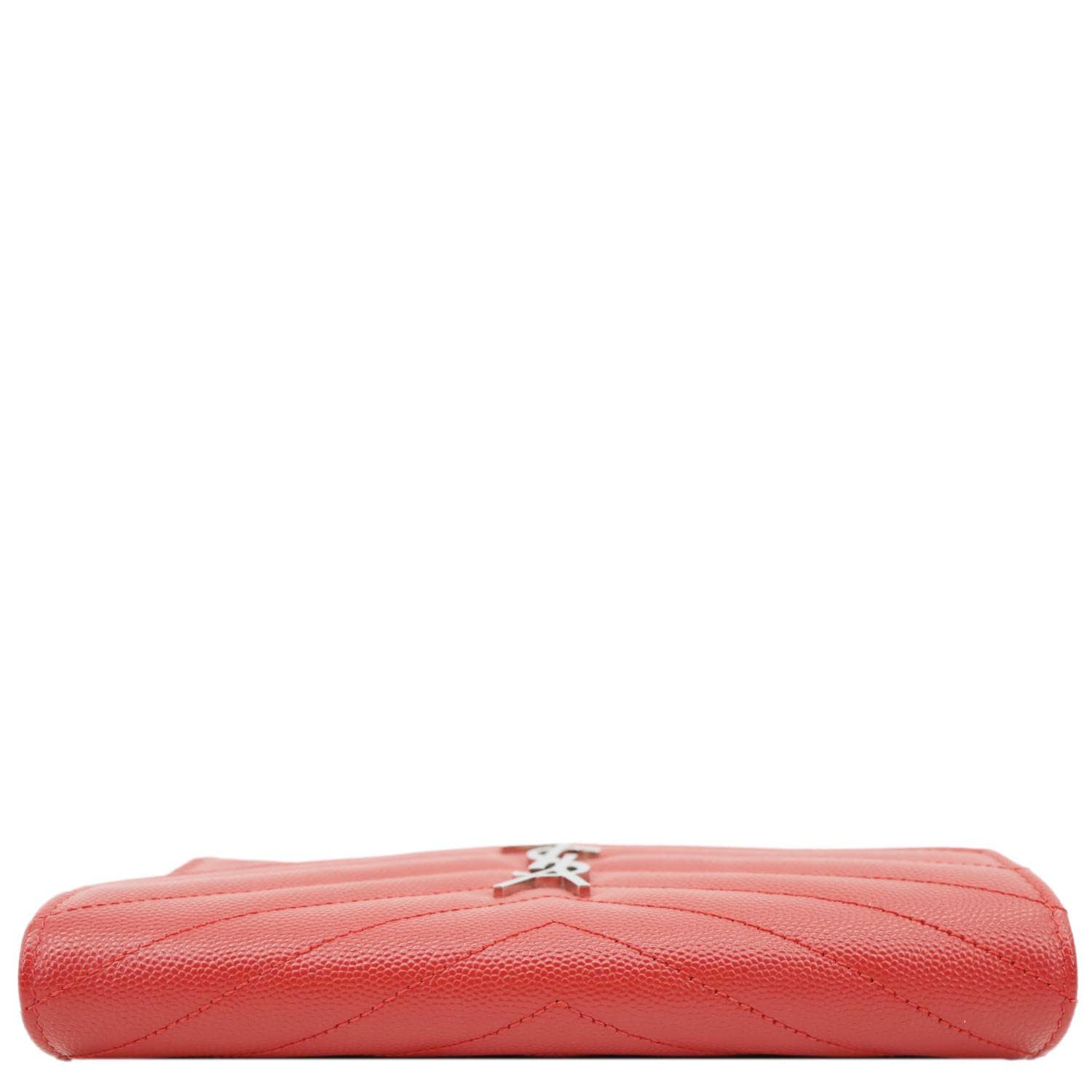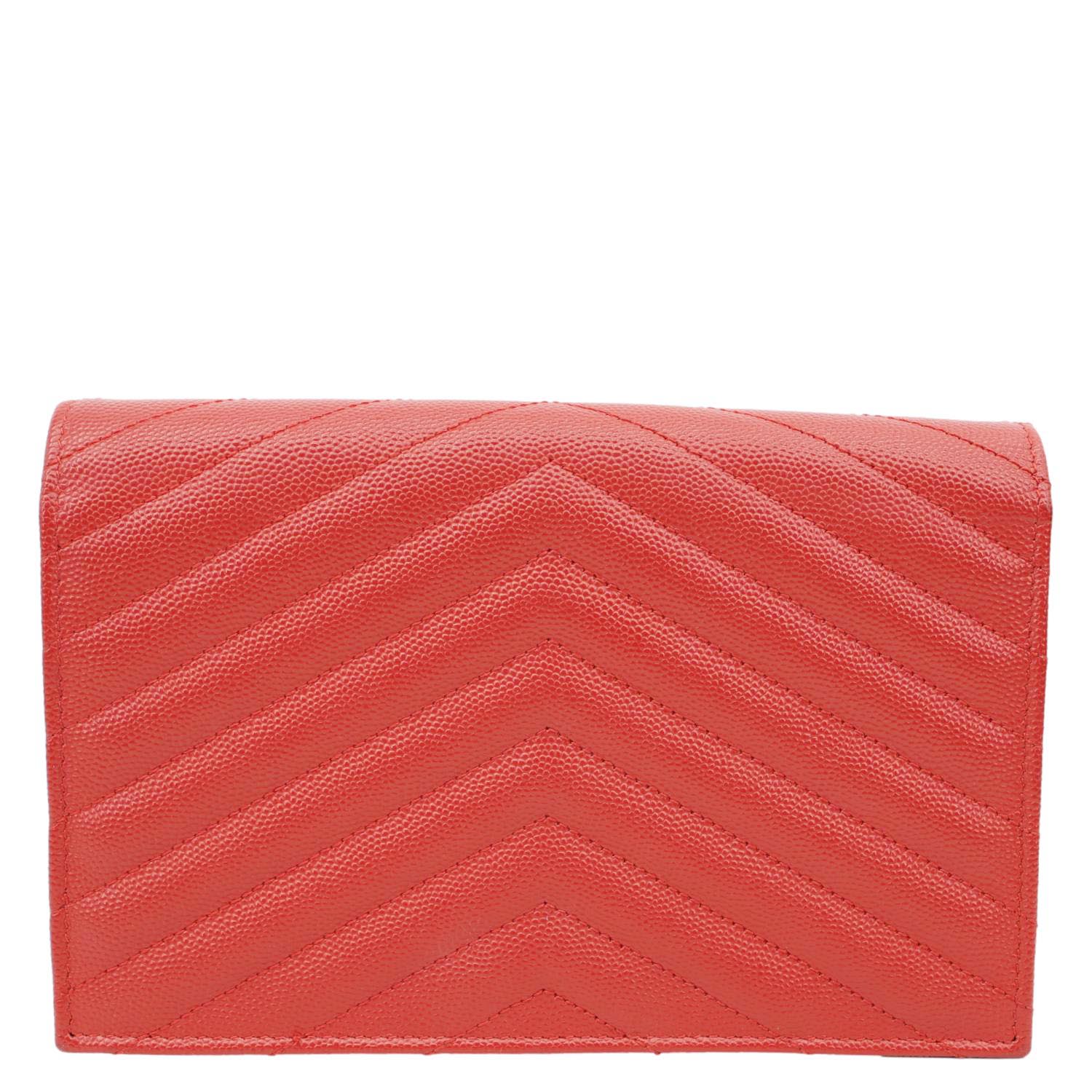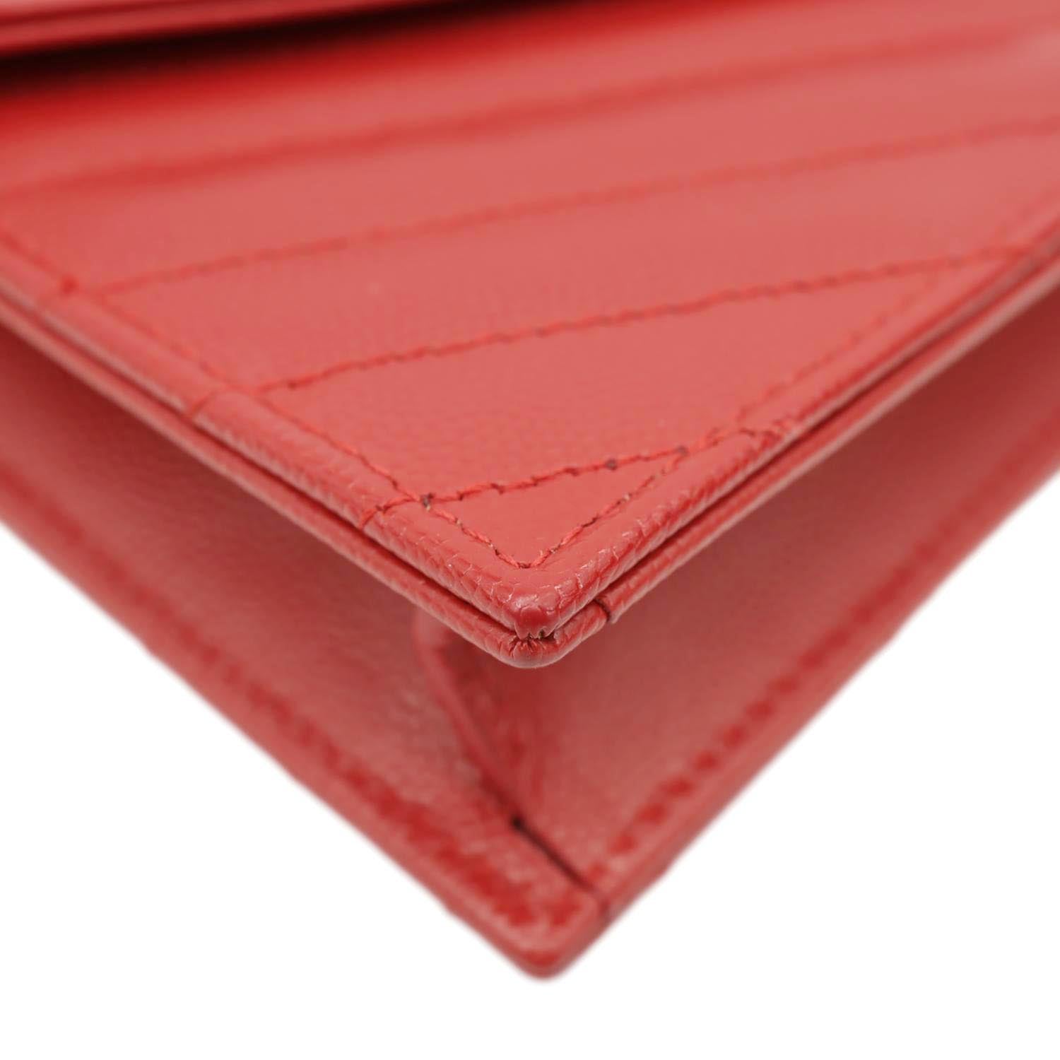 YVES SAINT LAURENT Cassandra Matelasse Grain De Poudre Chain Wallet Red