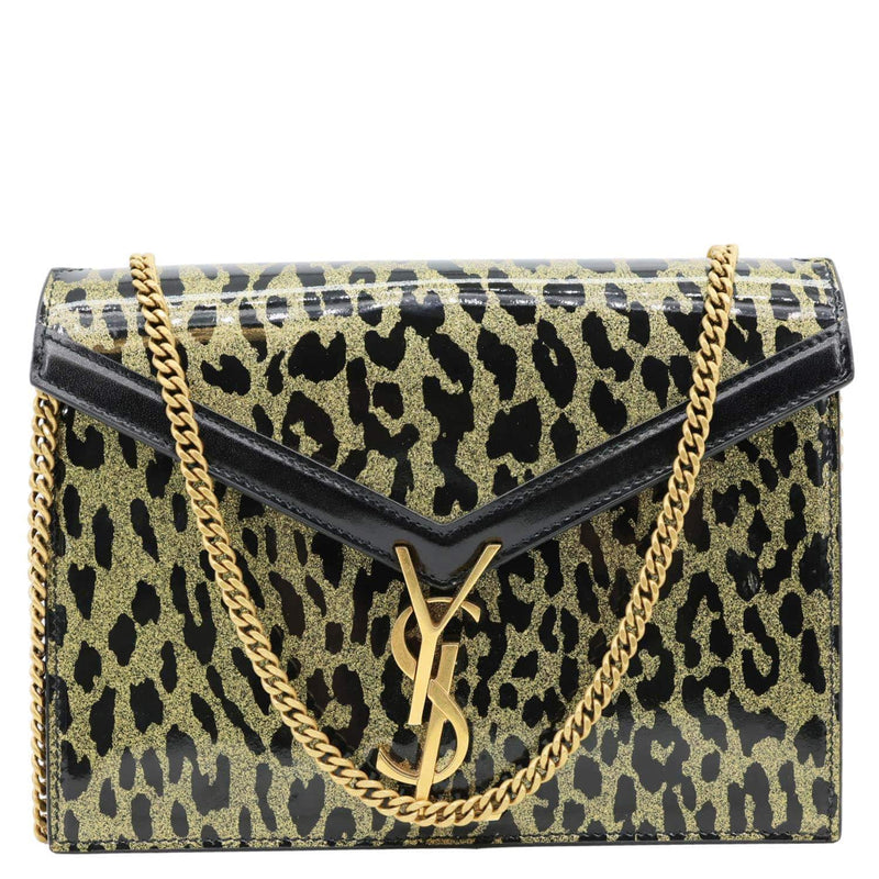 YVES SAINT LAURENT Cassandre Envelope Leopard Print Leather Chain Wallet Bag Gold