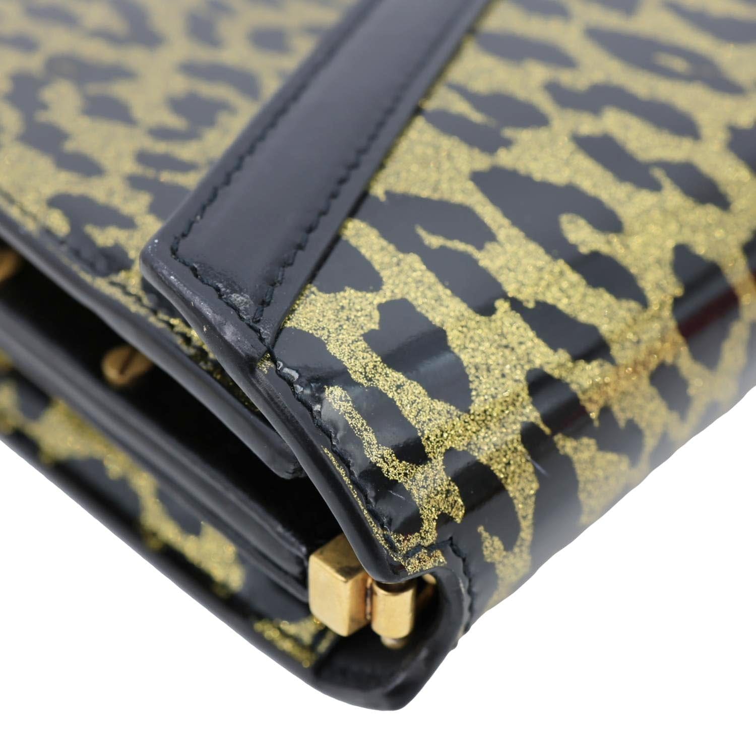Cassandre Envelope Leopard Print Leather Chain Wallet Bag Gold
