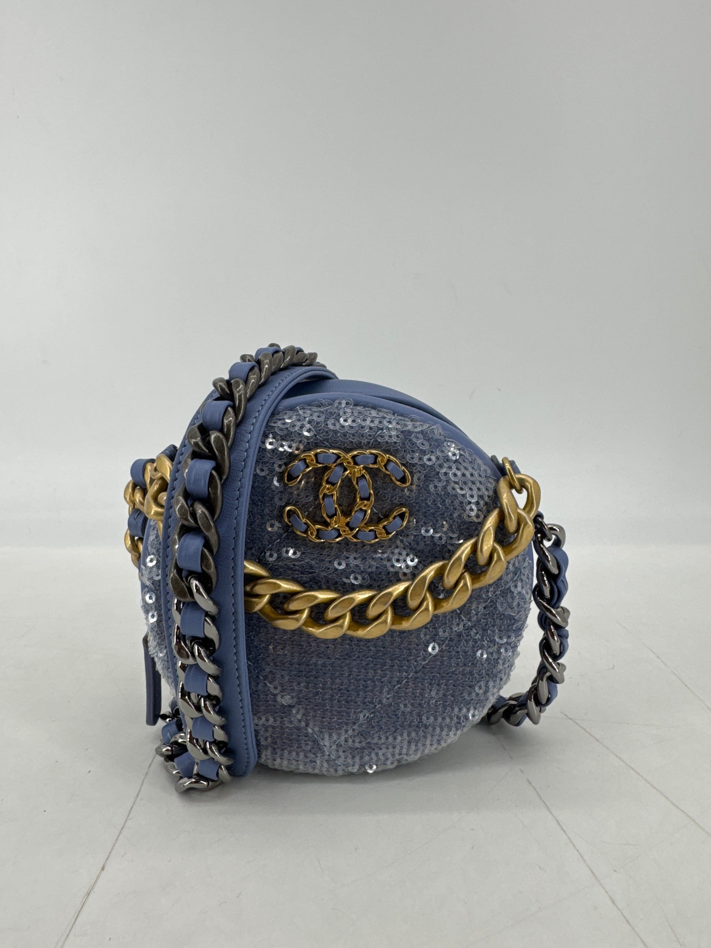 53694-SYB Chanel 19 Sequins Round Bag