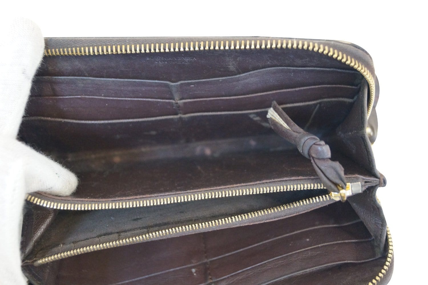 BOTTEGA VENETA Intrecciato Woven Leather Zip Around Wallet - Sale Condition Detail: