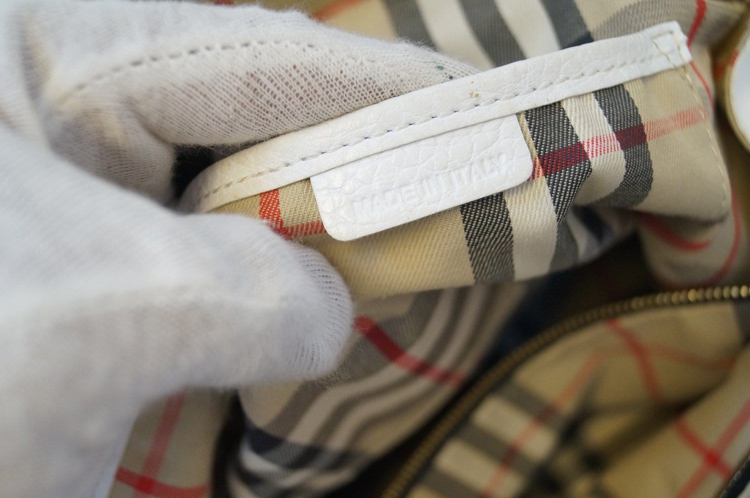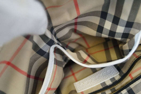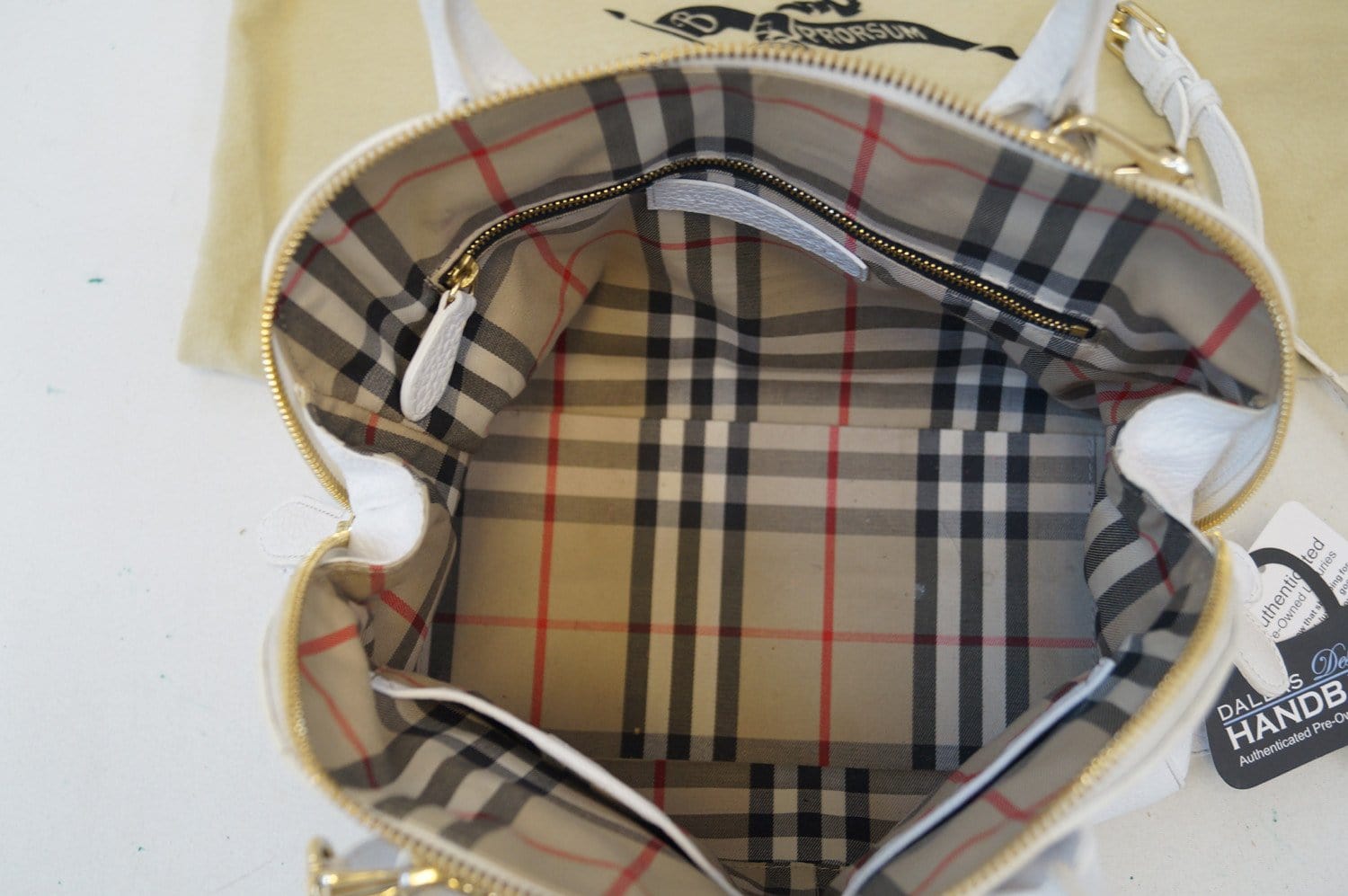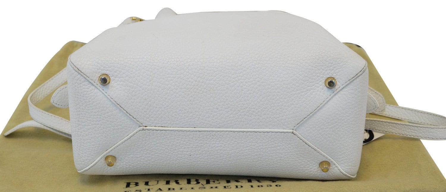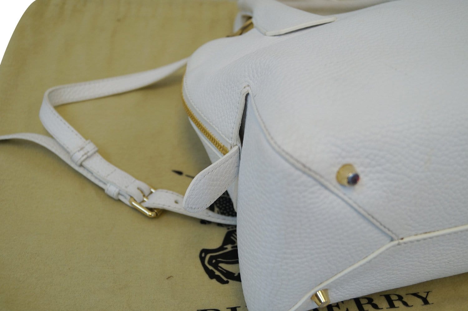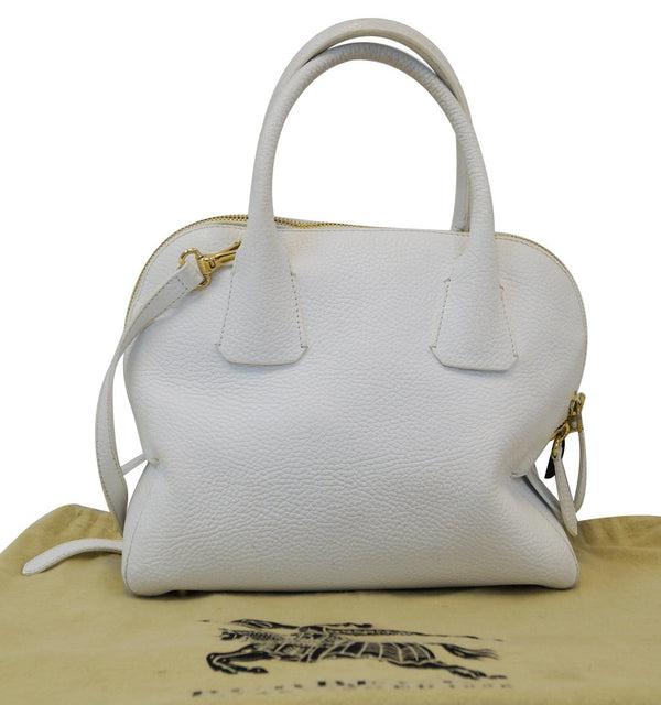 BURBERRY Grainy Leather White Bowling Shoulder Bag