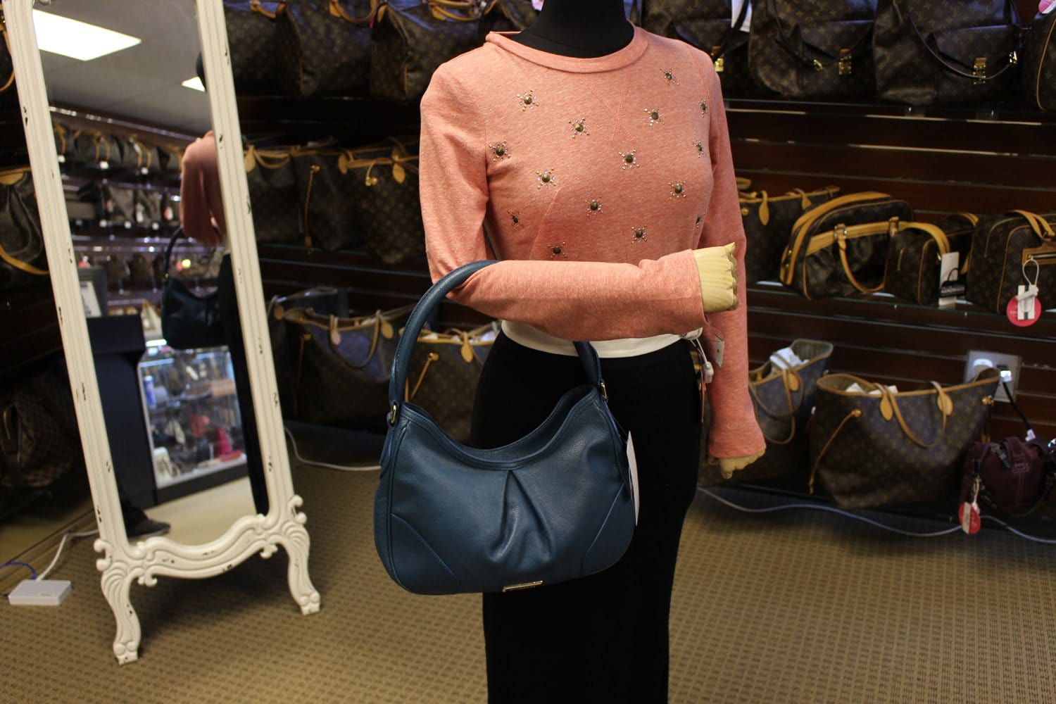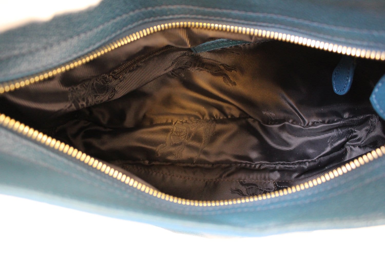 BURBERRY Hernville Leather Teal Small Hobo Bag - Sale