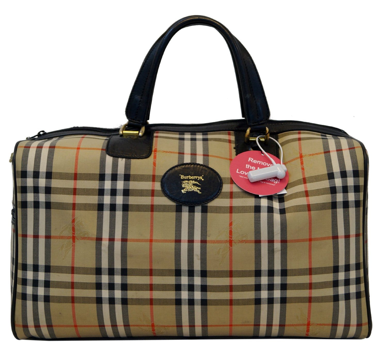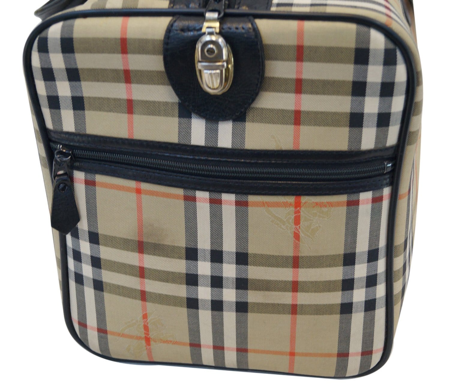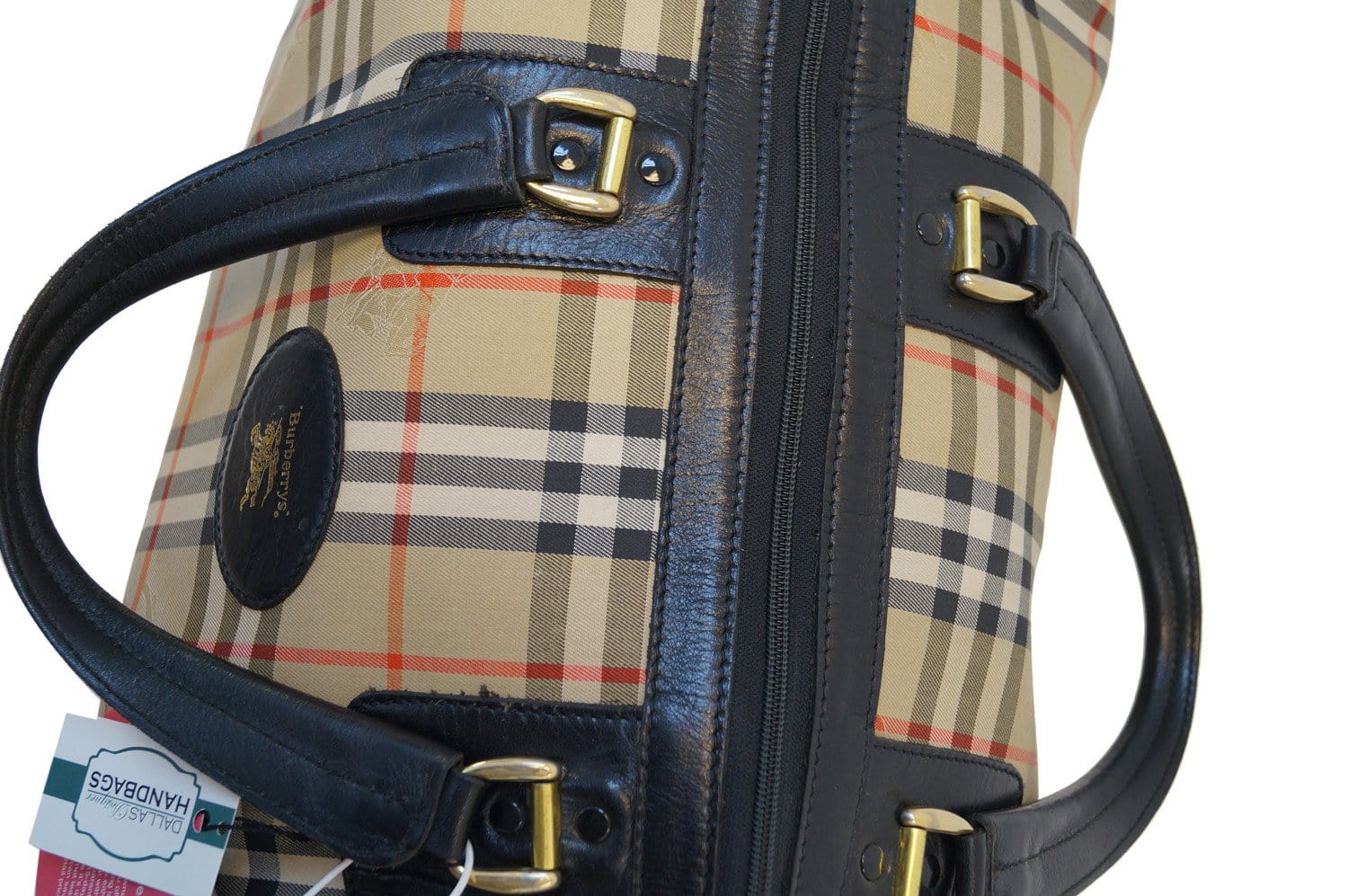 Burberry Nova Check Canvas Leather Black Beige Travel Bag