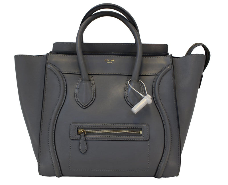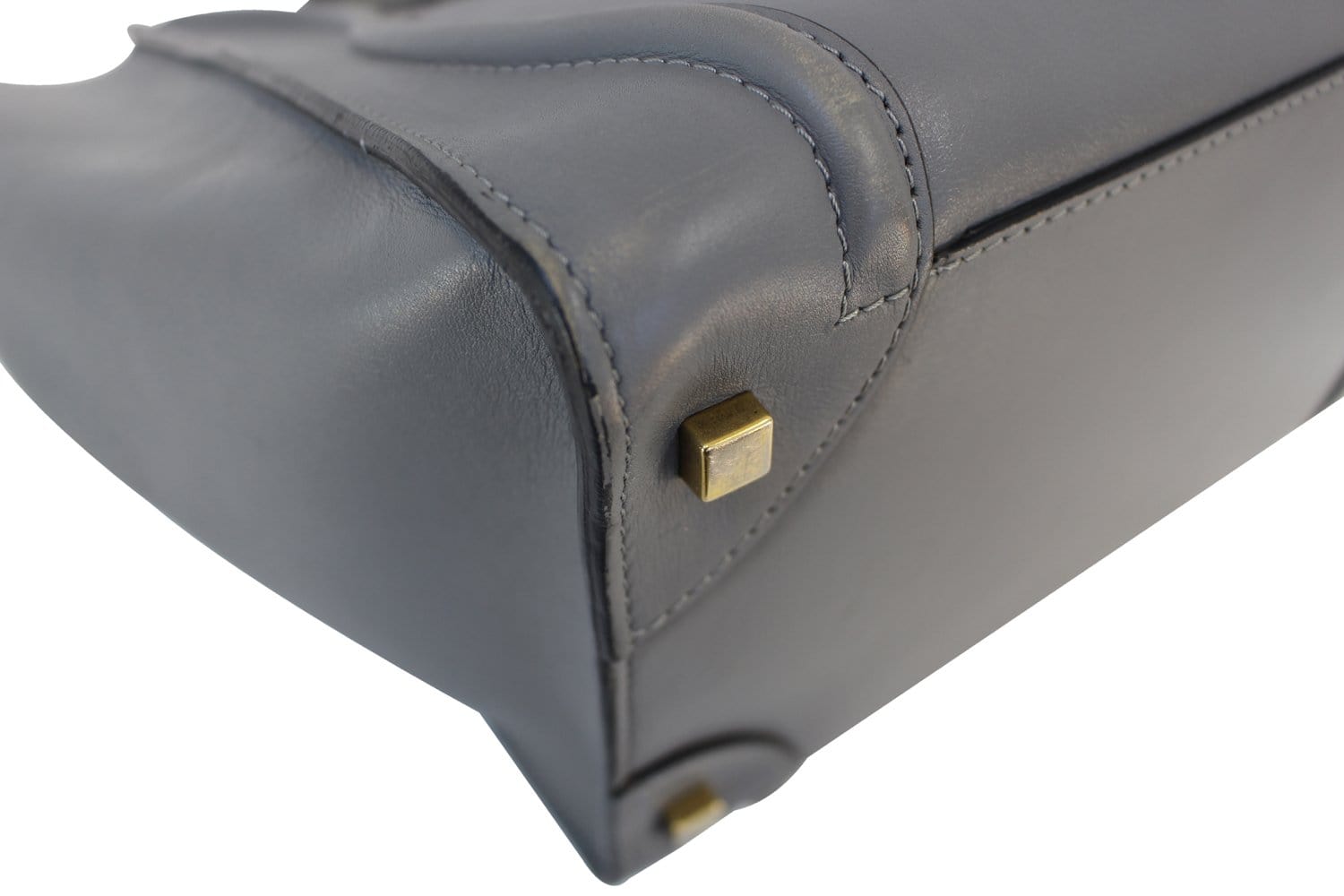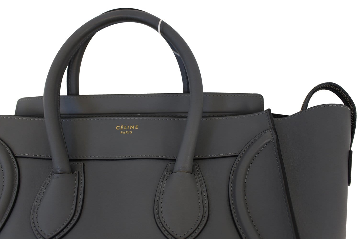 CELINE Grey Calfskin Leather Mini Luggage Tote Bag