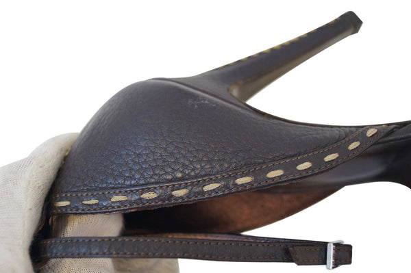 Vero Cuoio Brown Leather Fur Heels 37 Size
