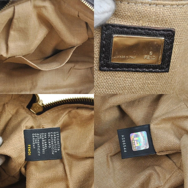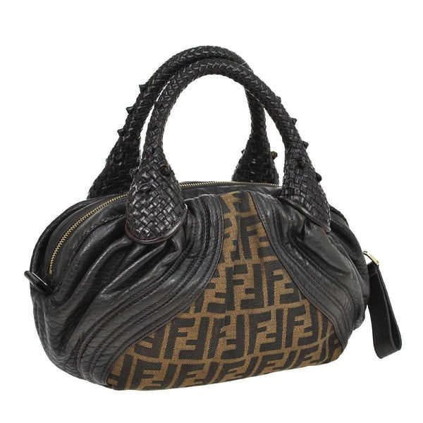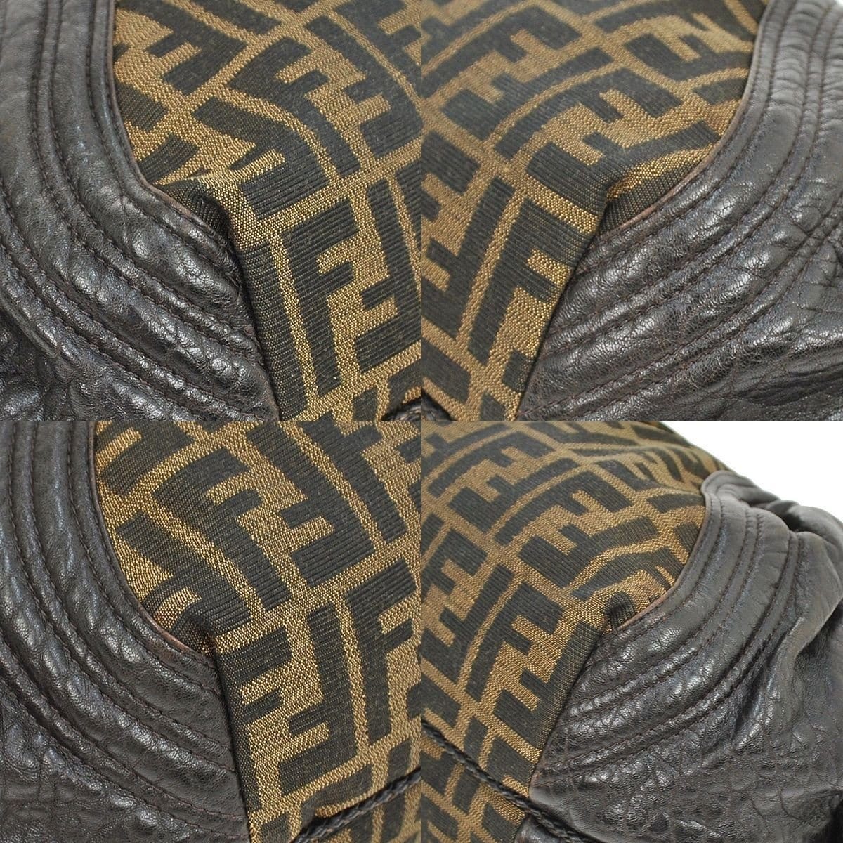 Fendi Zucca Pattern HandBag Brown Nylon Leather
