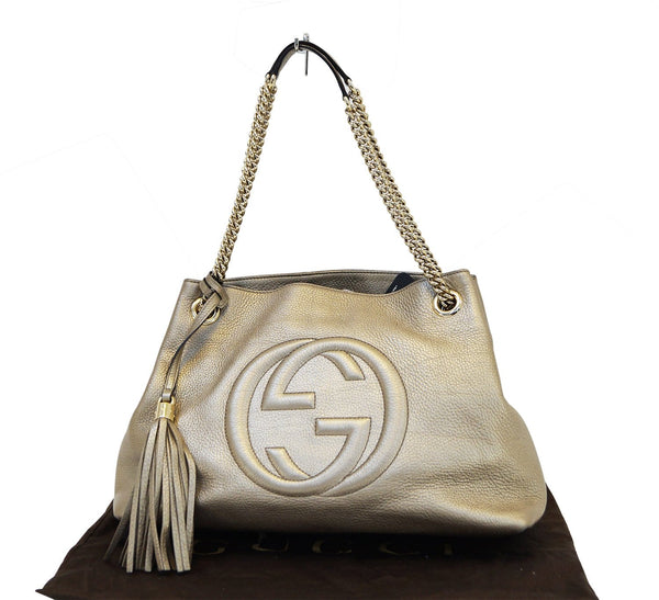GUCCI Gold Pebbled Leather Soho Chain Tote Bag
