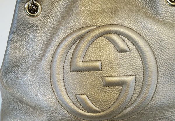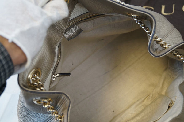 Authentic GUCCI Gold Pebbled Leather Soho Chain Tote Bag E3184