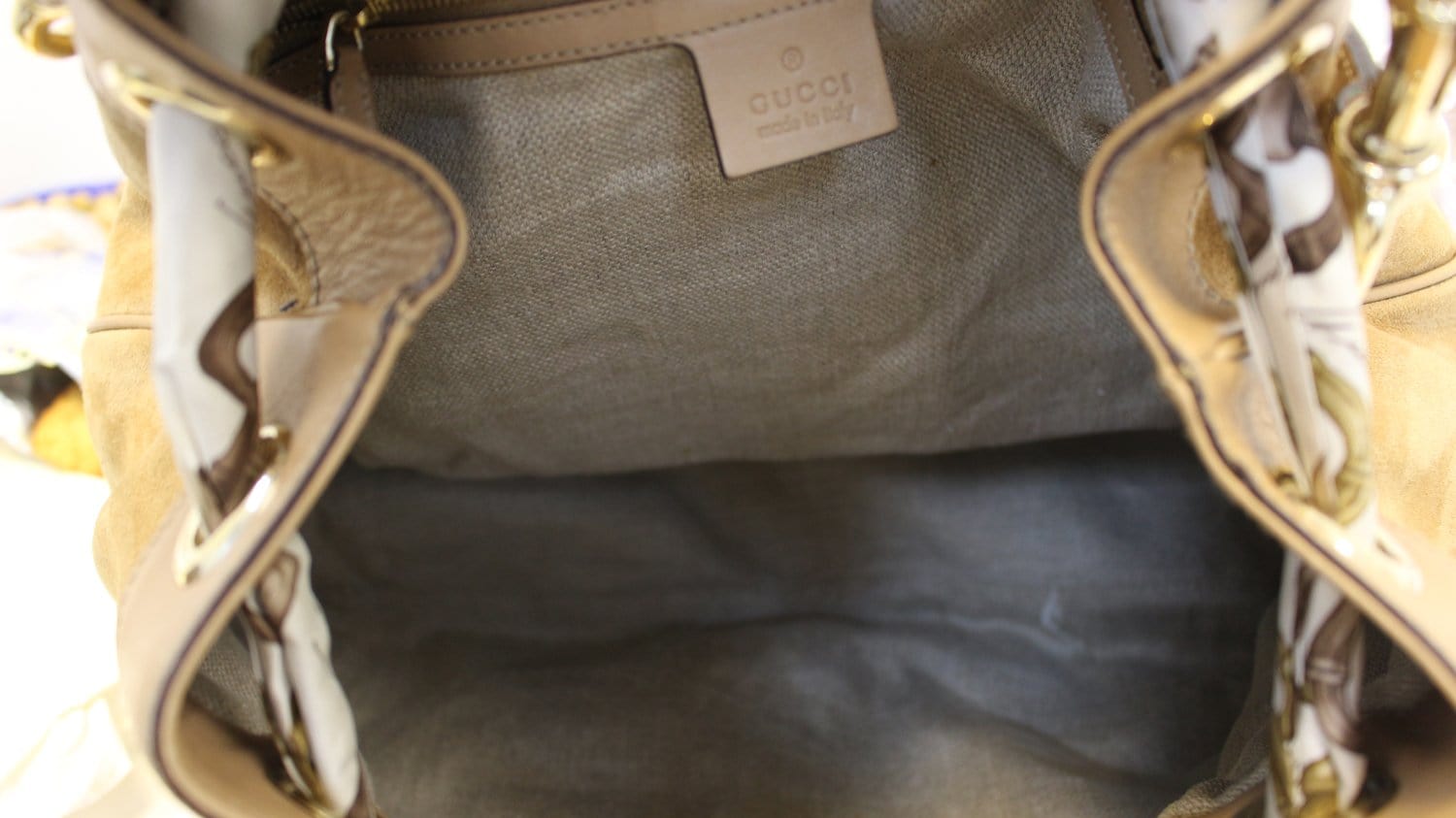 Visible Scratches, rubbed corners, leather tanning darkening. inside stains |