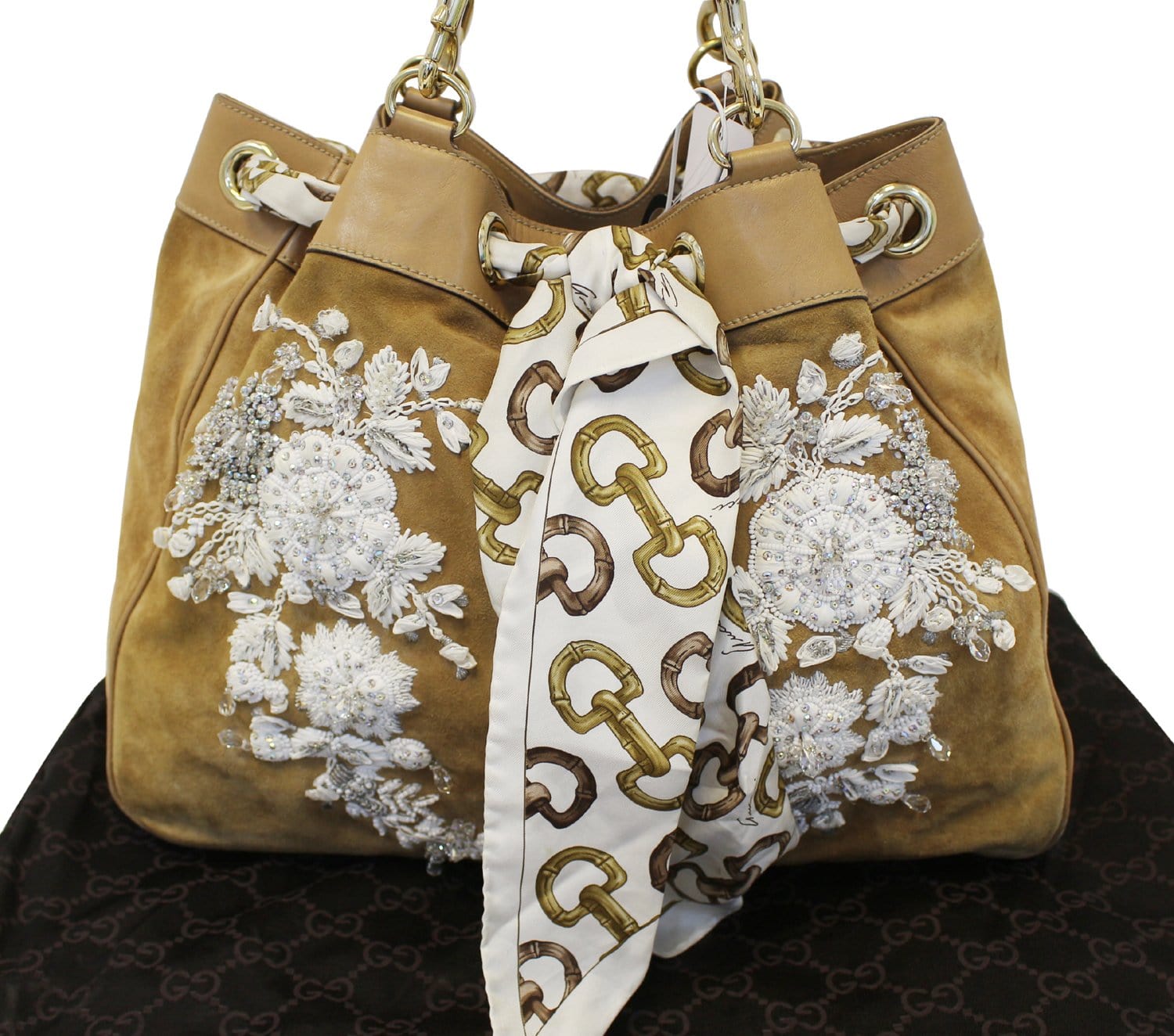 GUCCI Limited Edition White/Brown Embroidered Canvas Positano Bag - Final Call