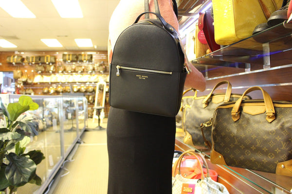 Authentic HENRI BENDEL WEST 57TH Saffiano Black leather Backpack TT1569