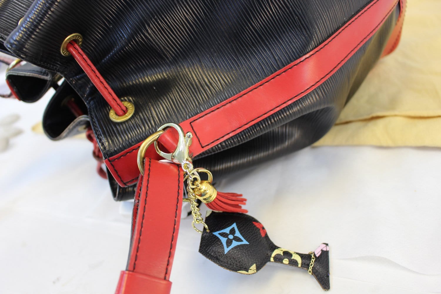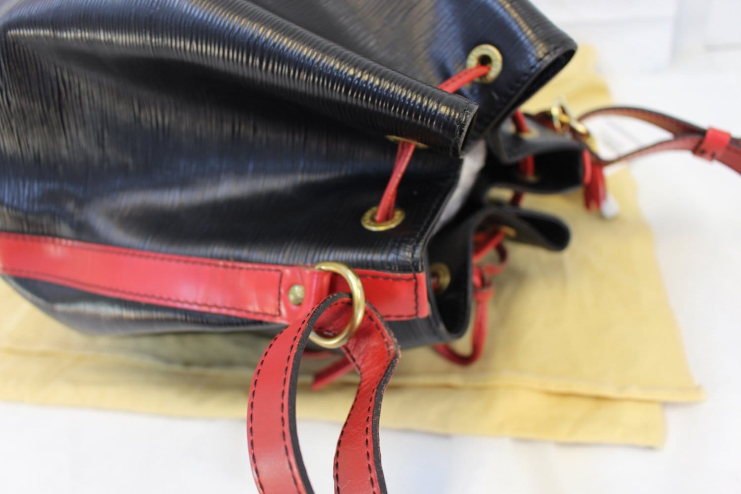 LOUIS VUITTON Black Red Epi Leather Large Noe Bag