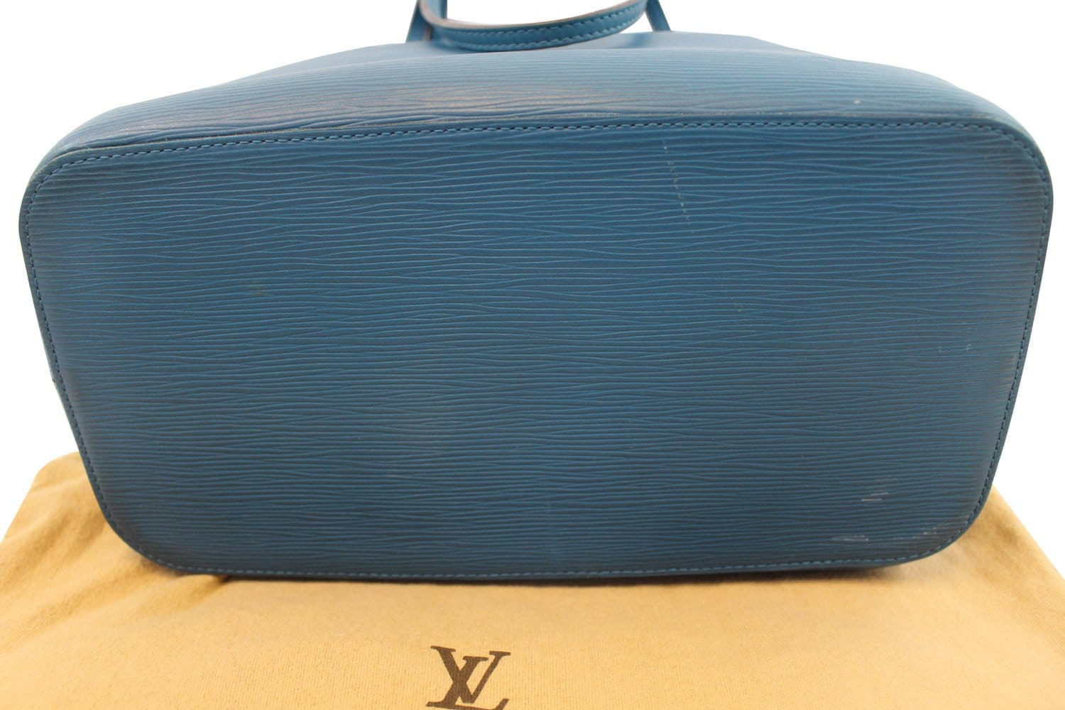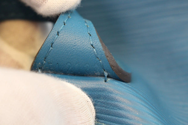 The Louis Vuitton Epi Leather NM Neverfull MM bag has fashion and functionality all rolled into one. This MM is the mid-size of the LV Neverfull family. Its roomy capacity, versatility and durability makes it perfect for taking to the office or going shopping. This New Model (NM) Neverfull features a detachable Epi pouch and sleek matching microfiber interior lining. This beautiful bag is crafted in Cyan Epi leather for a look that is chic and modern.