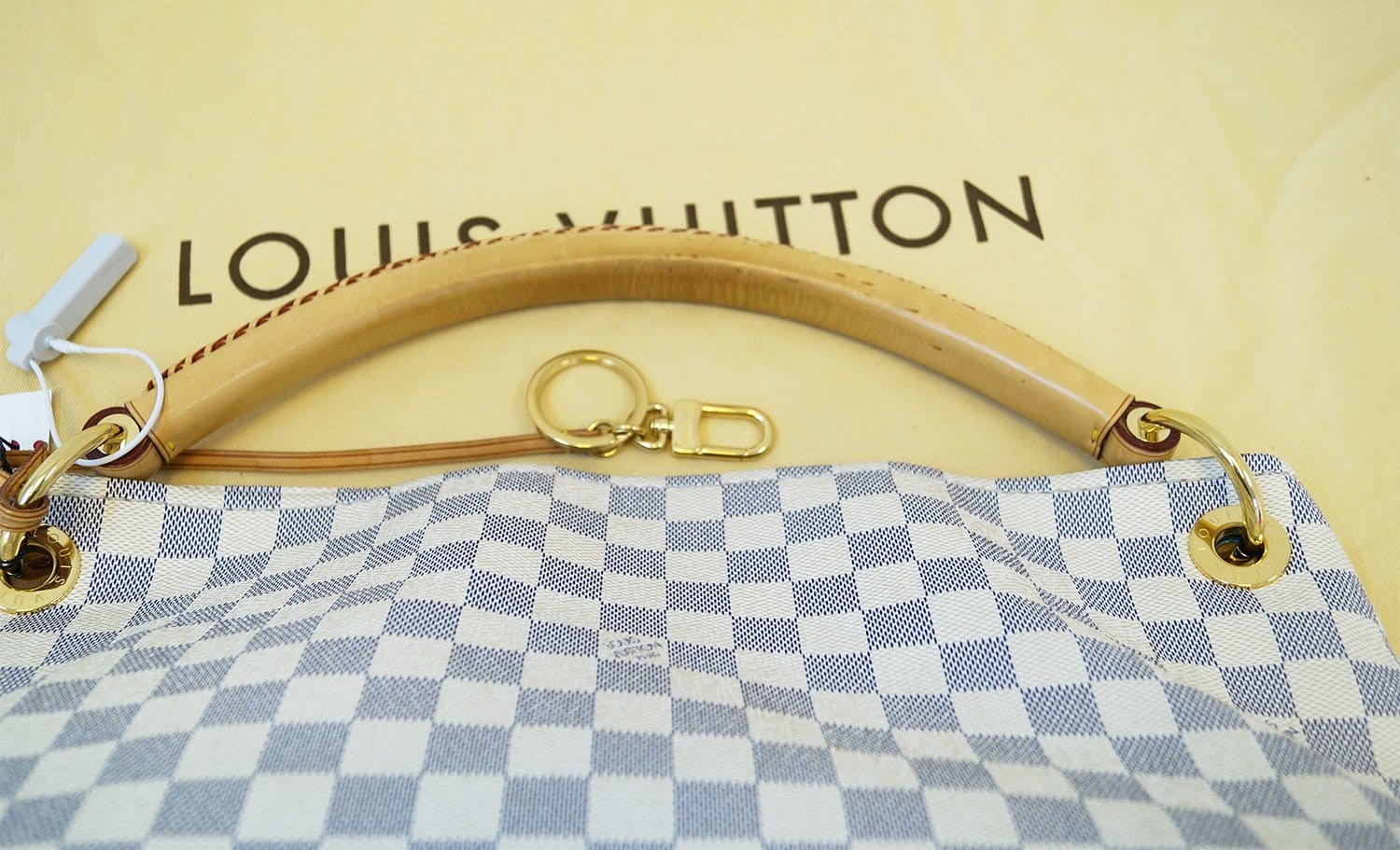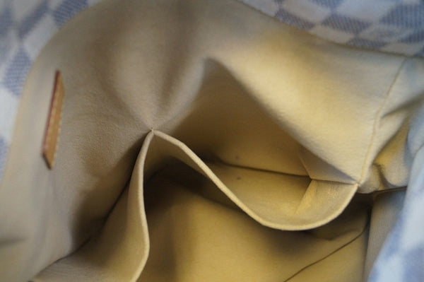 The Louis Vuitton Damier Azur Canvas Artsy MM Bag has a unique and modern structure. This roomy tote makes a perfect work or weekend bag, large enough to hold all your essentials in style. It features a detachable stylish Louis Vuitton key ring for exterior or interior use, and enough interior pockets to keep you organized on the go. Look super fabulous with this classic shoulder bag!