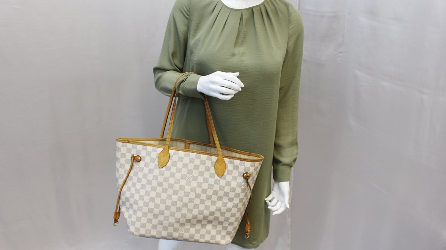 The Louis Vuitton Damier Azur Neverfull MM bag has fashion and functionality all rolled into one. This MM is the mid-size of the LV Neverfull family.