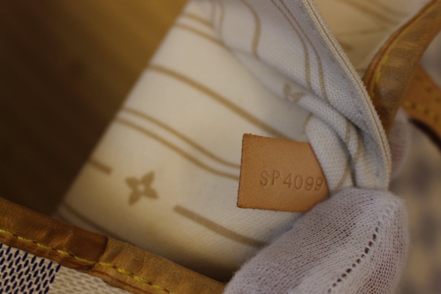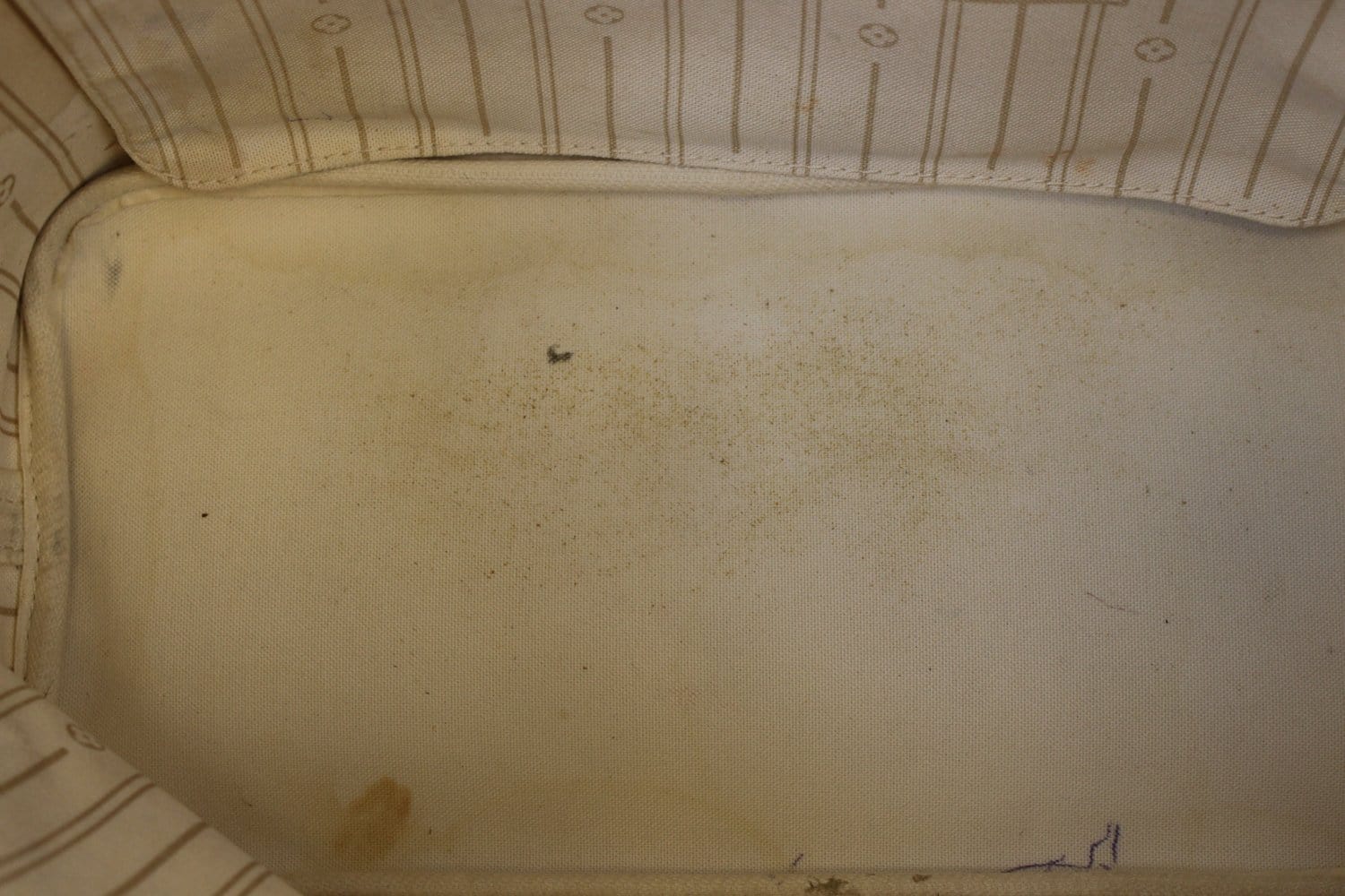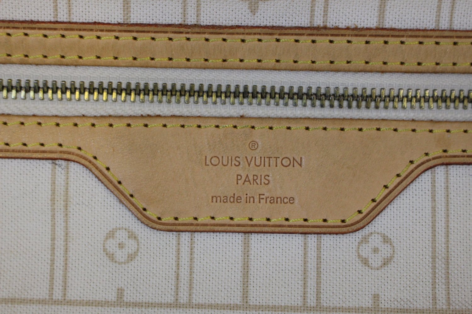 The Louis Vuitton Azur Damier Canvas Neverfull MM bag has fashion and functionality all rolled into one. This MM is the mid-size of the LV Neverfull family. Its roomy capacity, versatility and durability makes it perfect for taking to the office or going shopping. In fact, each of the handles is capable of resisting up to 231 lbs.!