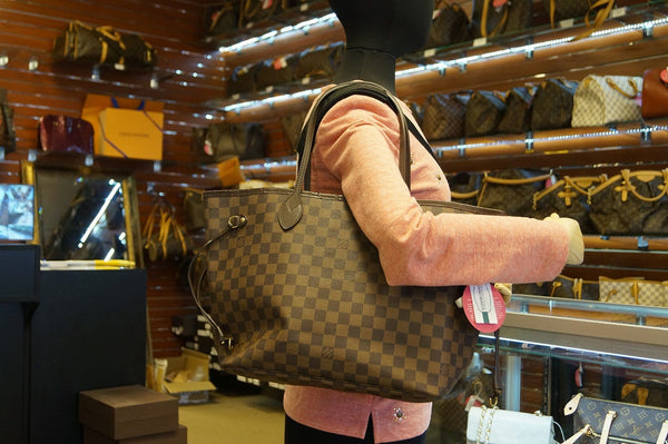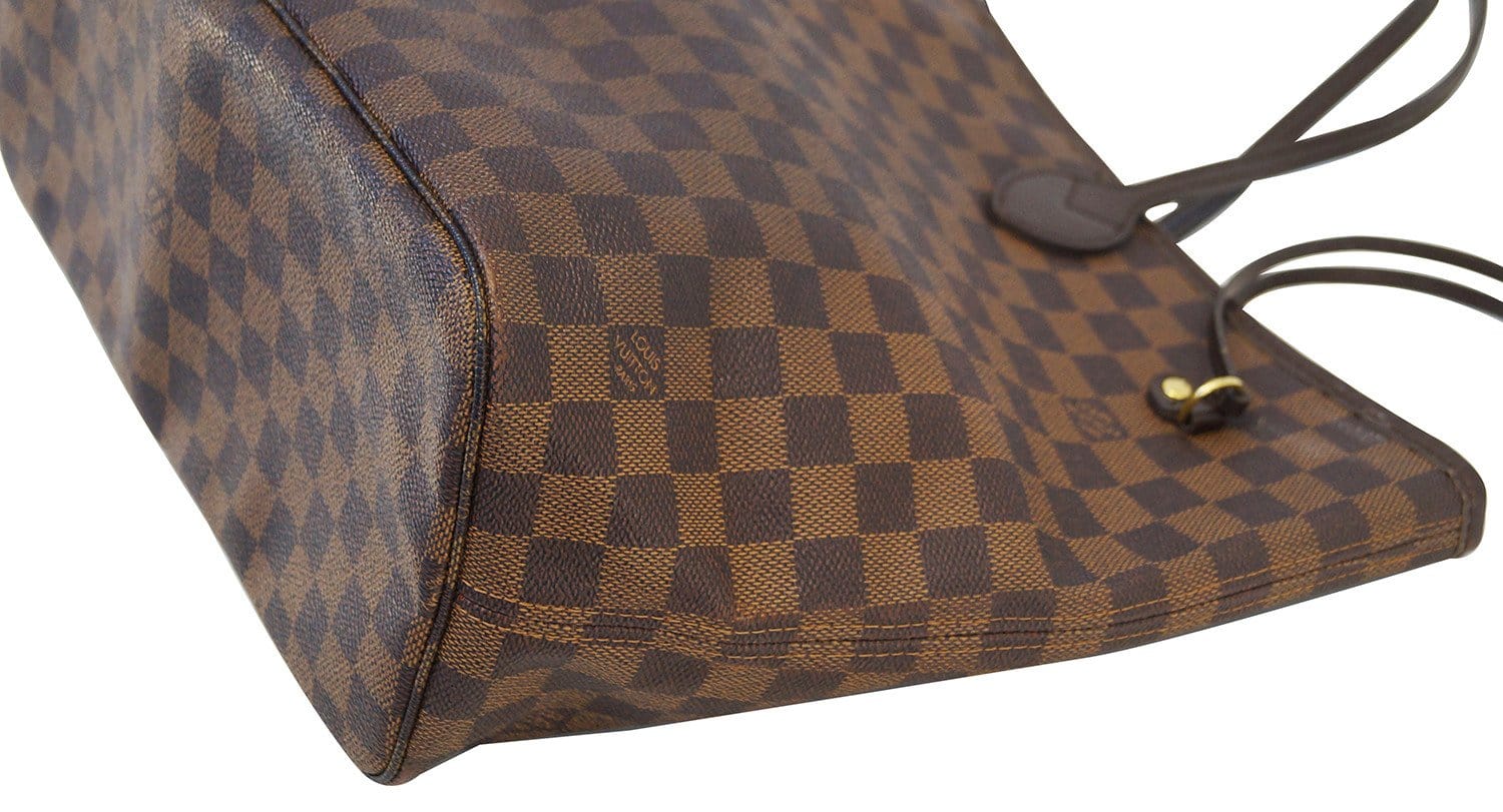 The Louis Vuitton Damier Ebene Neverfull MM bag has fashion and functionality all rolled into one. This MM is the mid-size of the LV Neverfull family.