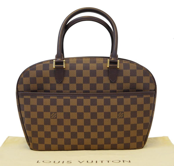 Two words describe the Louis Vuitton Damier Canvas Sarria Horizontal Bag: sophisticated and chic. This versatile everyday bag features an interior that's accessed through a double zipped opening. This unique style has a double handle carrying option and a front slip pocket.